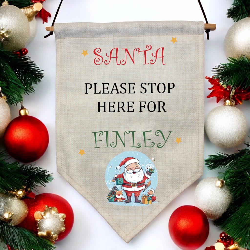 Personalised Santa Stop Here Flag | Novelty Santa Stop Here Sign