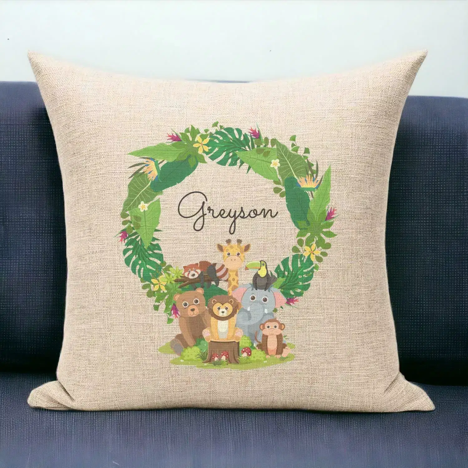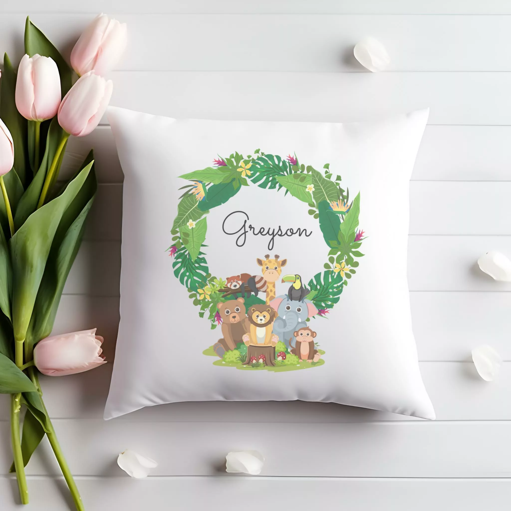 Personalised Cushion – For Kids Bedoom Animal Wreath