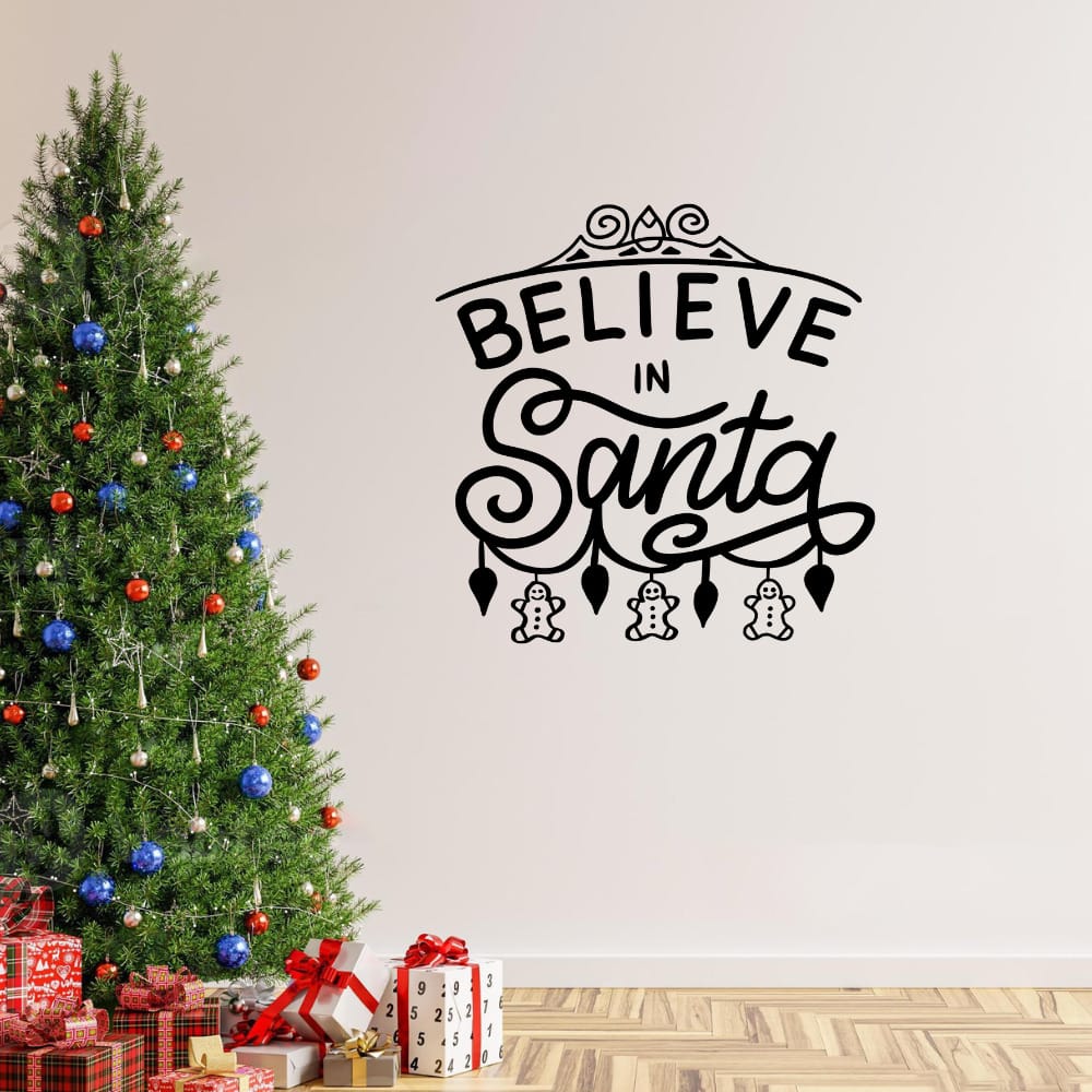Check out this cool wall decal “Believe in Santa”. Create a space that reflects you with something special. All our wall decals are made with Premium Quality Vinyl, ensuring a long lasting finish to any wall, may it be a Office, Barbers, Salon or Gym. No white or transparent edges, so the decal appears like part of your wall. Easy application