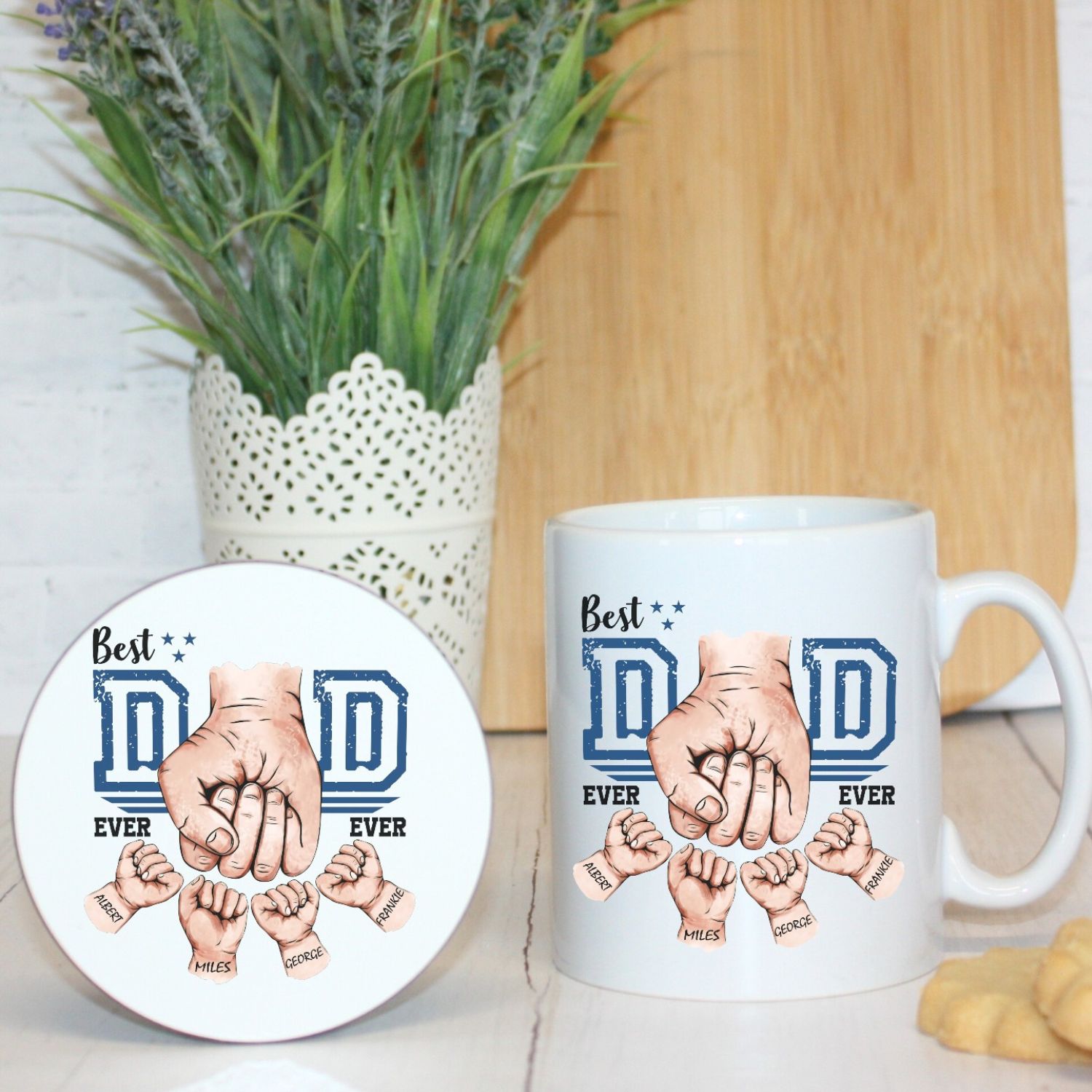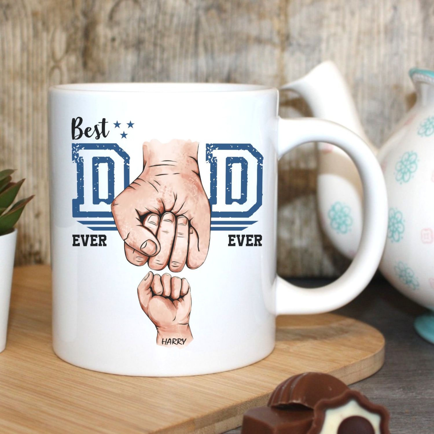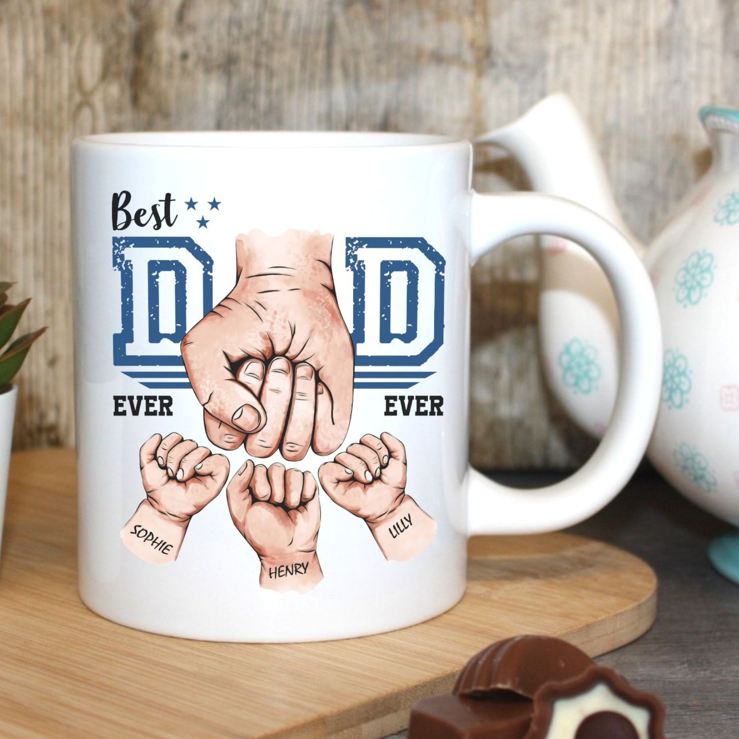 Customise the mug by adding the names of your little ones on each fist, creating a heartfelt and one-of-a-kind keepsake. Start Dad’s day with a smile as he enjoys his favorite brew in this touching tribute to his role as the world’s best dad!