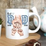 Celebrate your superhero with our personalized Best Dad mug, a perfect Father’s Day gift! Featuring a unique design of a father’s fists and children’s fists pumping the iconic “Best Dad” emblem, this mug captures the special bond between dad and kids.