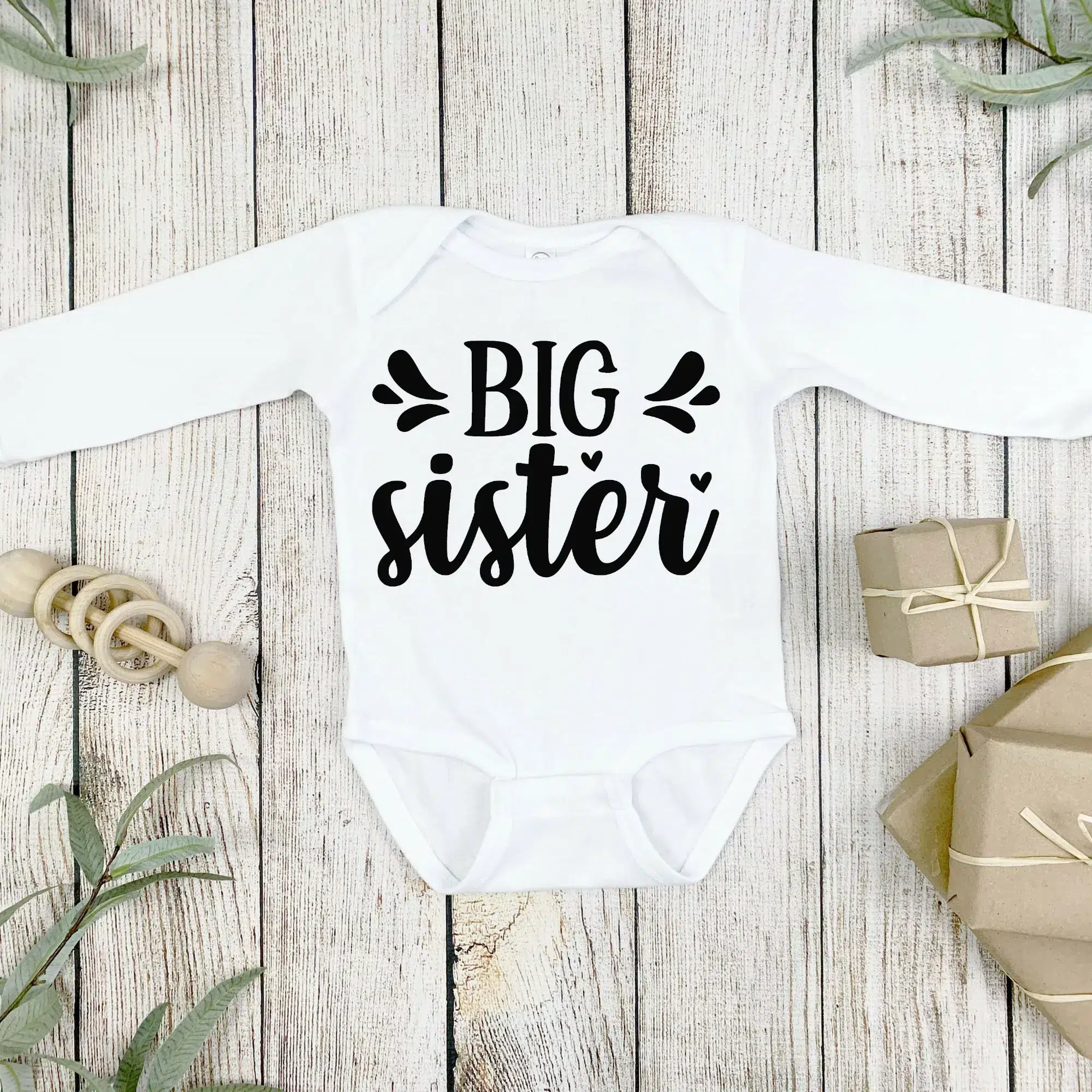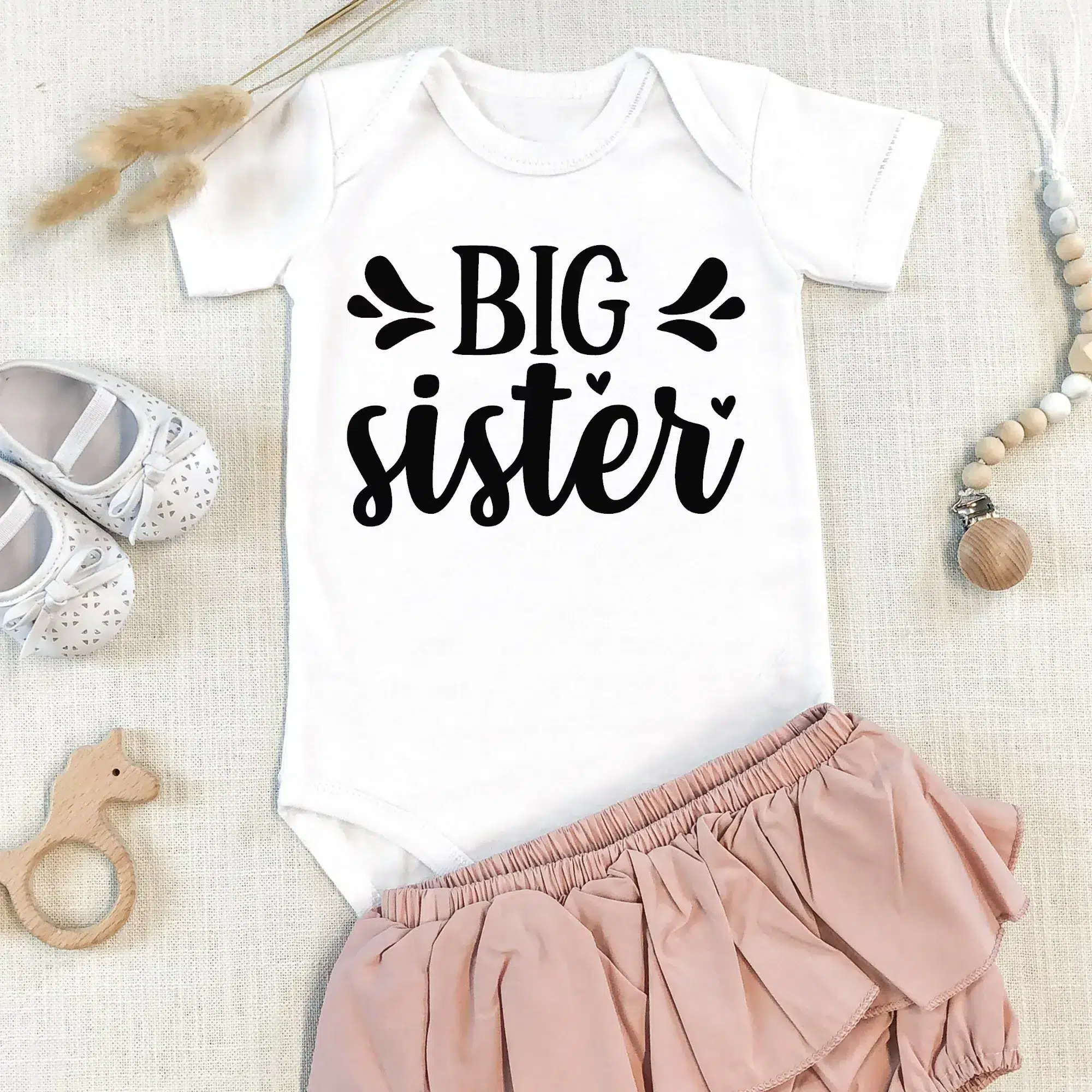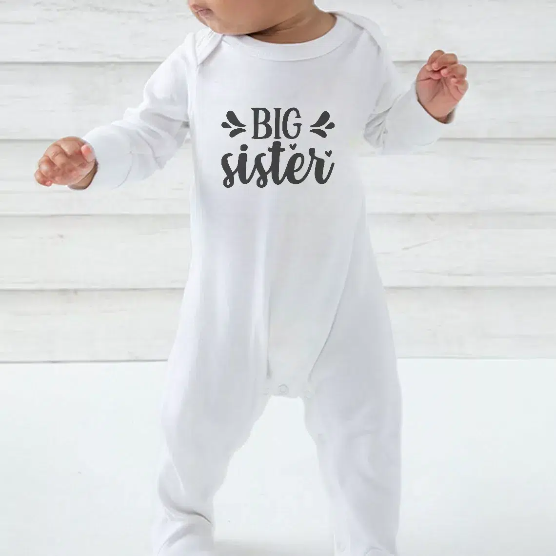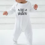 Embrace the simplicity and charm of our ‘Big Sister’ Babygrow – The perfect blend of style, comfort, and practicality for your little bundle of joy.