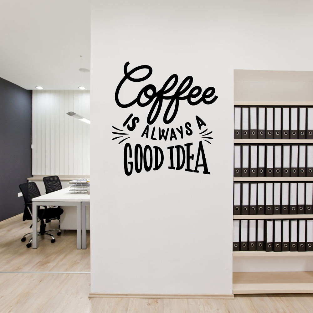 Make a house a home with a heartwarming quote for your wall like our ‘Coffee Is Always A Good Idea’ Vinyl Decal Wall decal .
