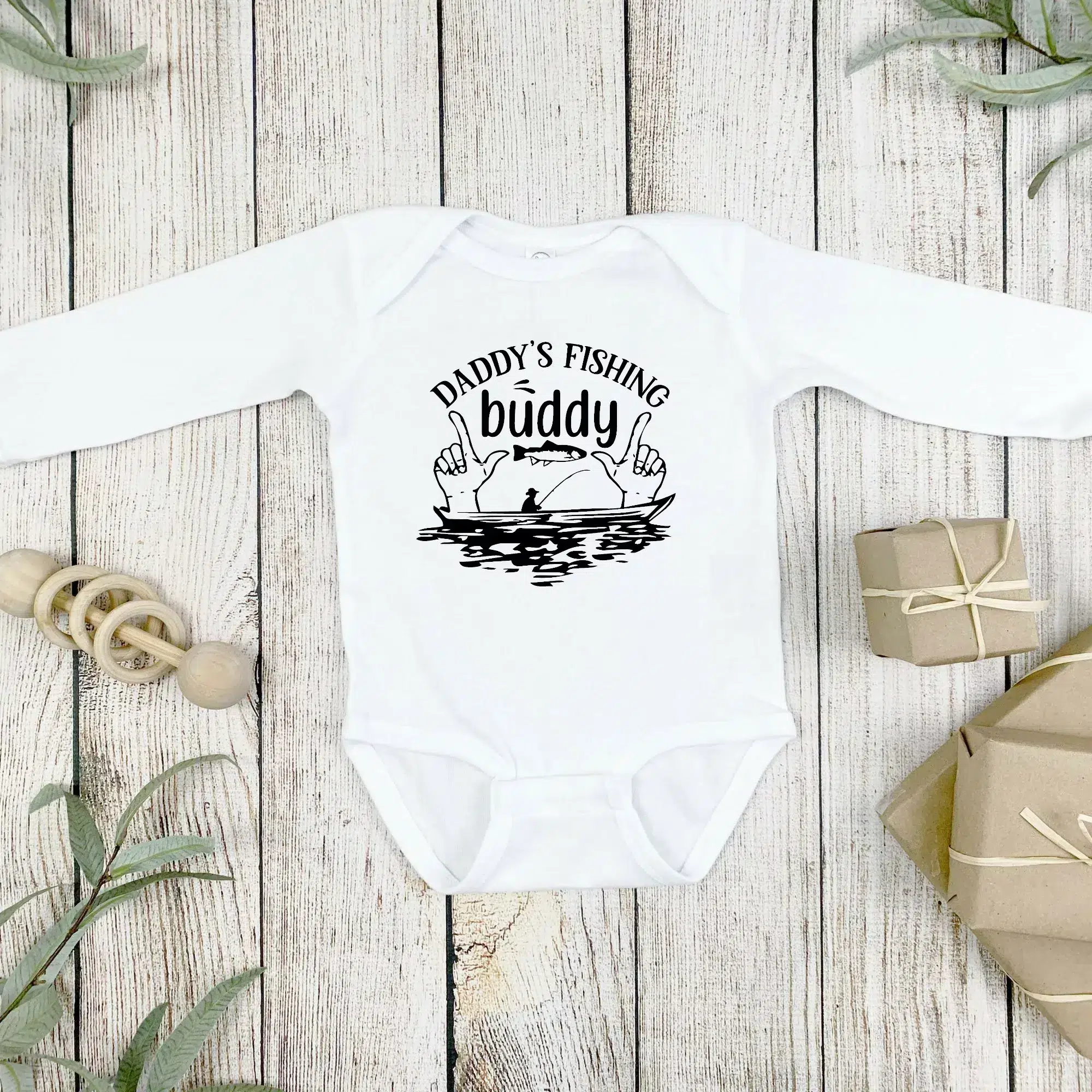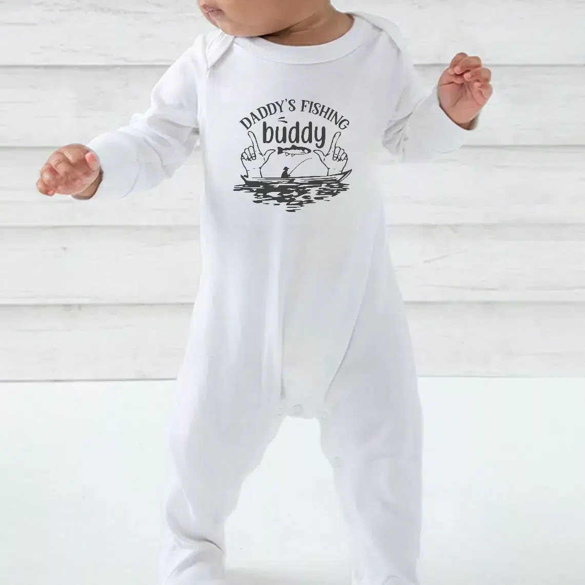 Embrace the simplicity and charm of our Daddy’s Fishing Buddy’ Babygrow – The perfect blend of style, comfort, and practicality for your little bundle of joy.