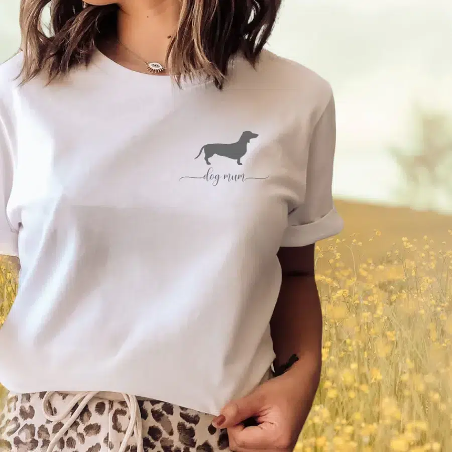 Indulge in the cuteness overload with our Personalised Dachshund T-shirt, designed to make any “dog mum” look great while sporting an adorable doggy saying.