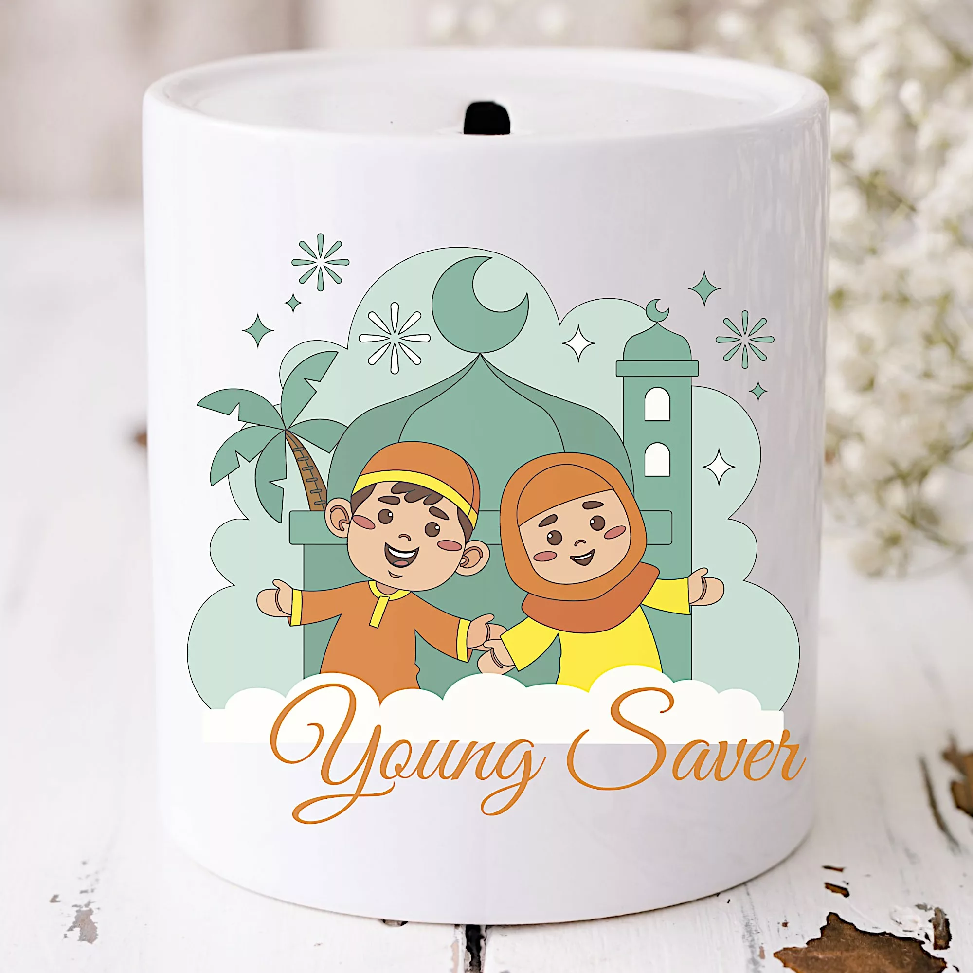 Introducing a whimsical way to teach kids the value of saving: our personalised ceramic money box, customisable both front and back!