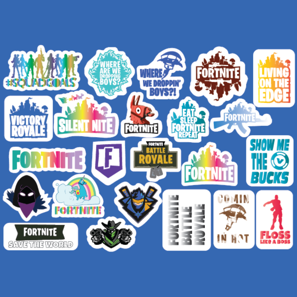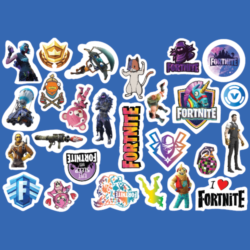 Why not personalise your phone, laptop, window, toys and more with this Fortnite Sticker Pack.
