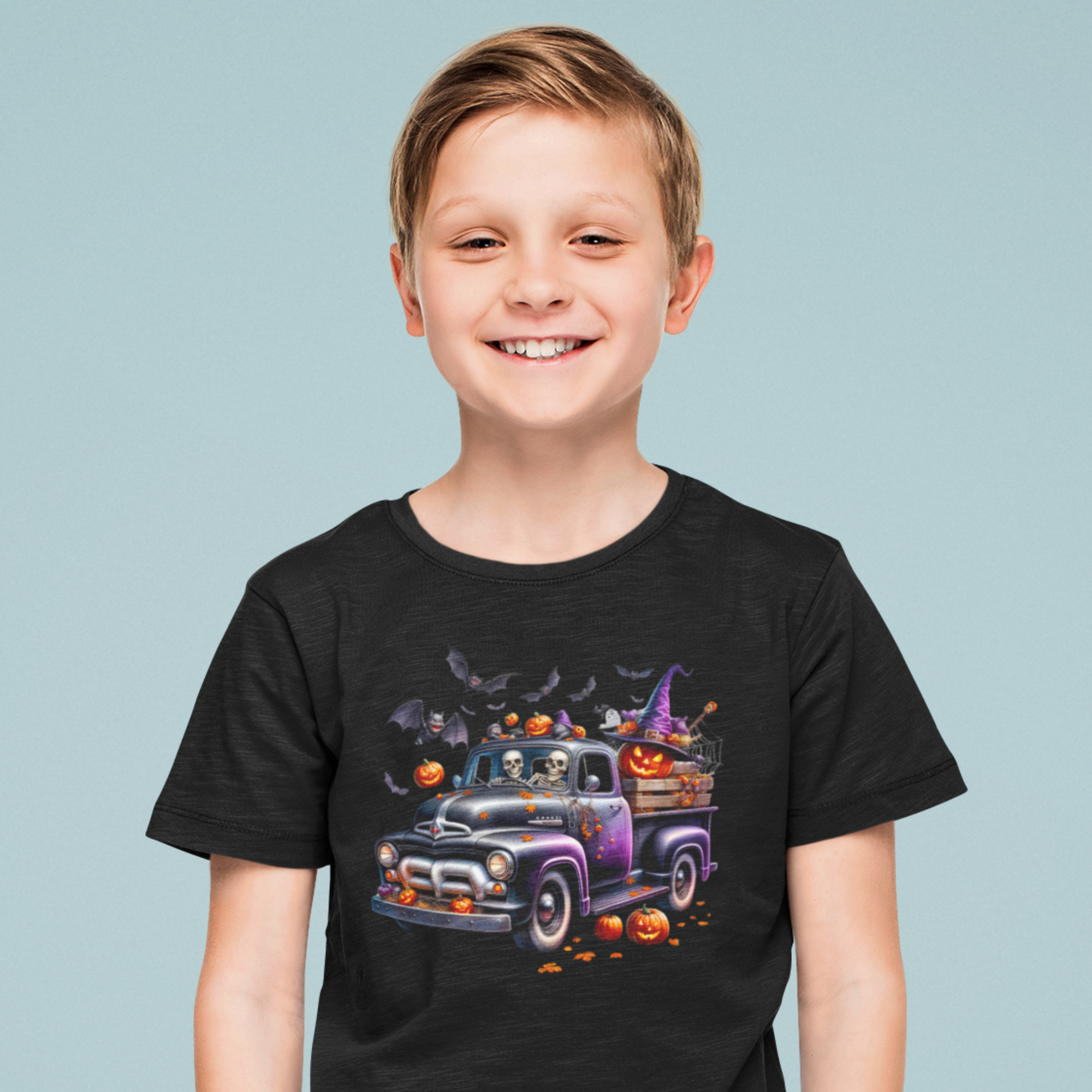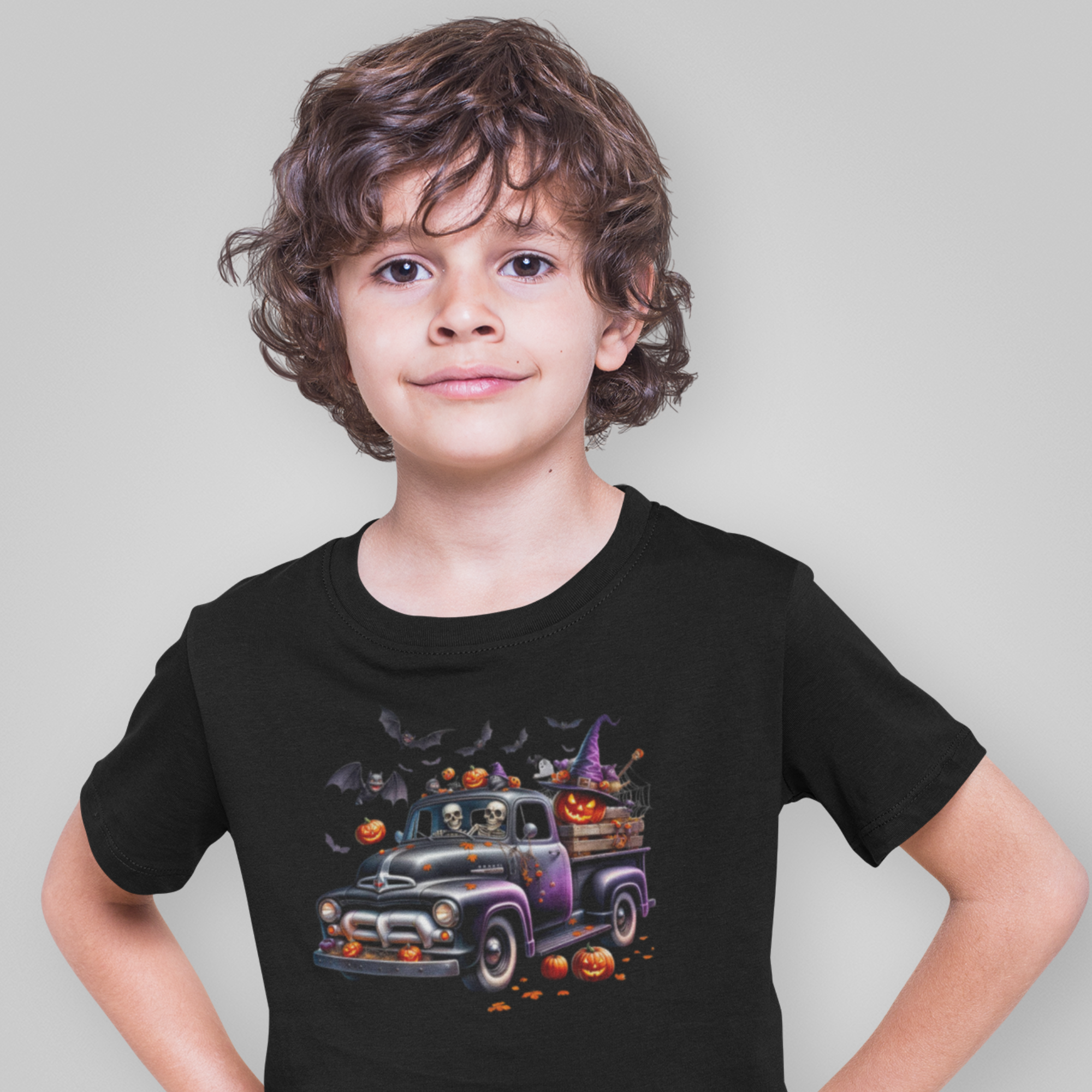 Get ready for a spook-tacular Halloween with our “Spooky Truck and Pumpkins” t-shirt! This fun Halloween t-shirt features a spooky-looking truck loaded with grinning Halloween pumpkins, creating a delightful and eerie scene that your little one will love. Perfect for boys who enjoy a bit of Halloween adventure, this vibrant design captures the essence of the season.
