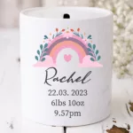 Personalised Money Box – Newborn Girl Rainbow Gift – Gift For New Mum