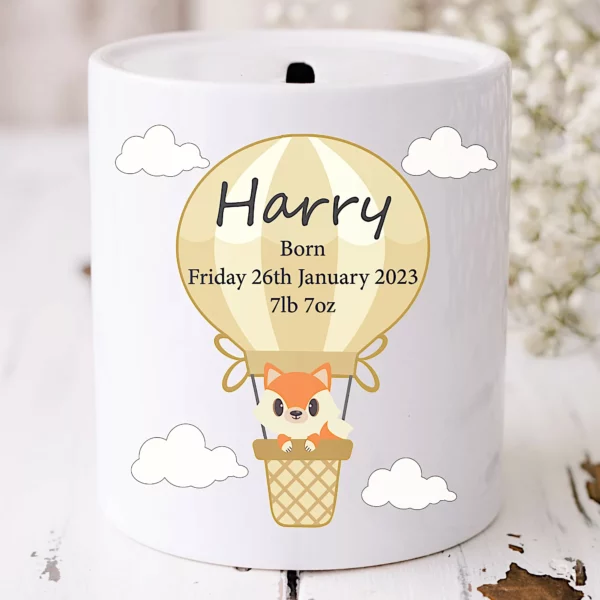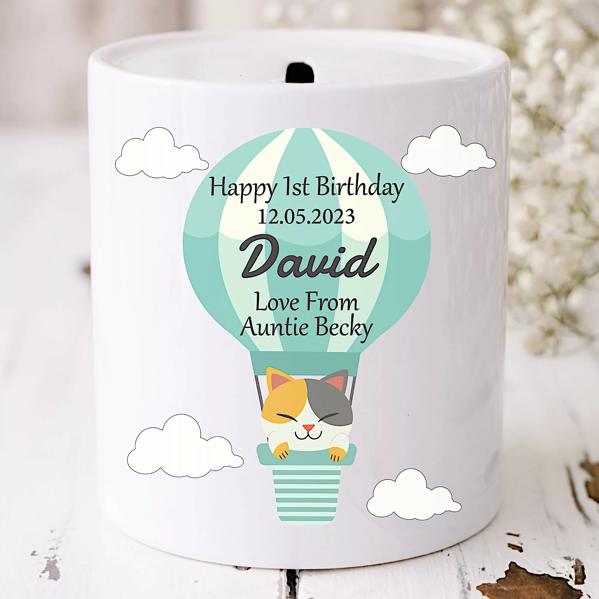 Personalised Air Balloon Money Box – Newborn Baby Gift – Balloon Nursery