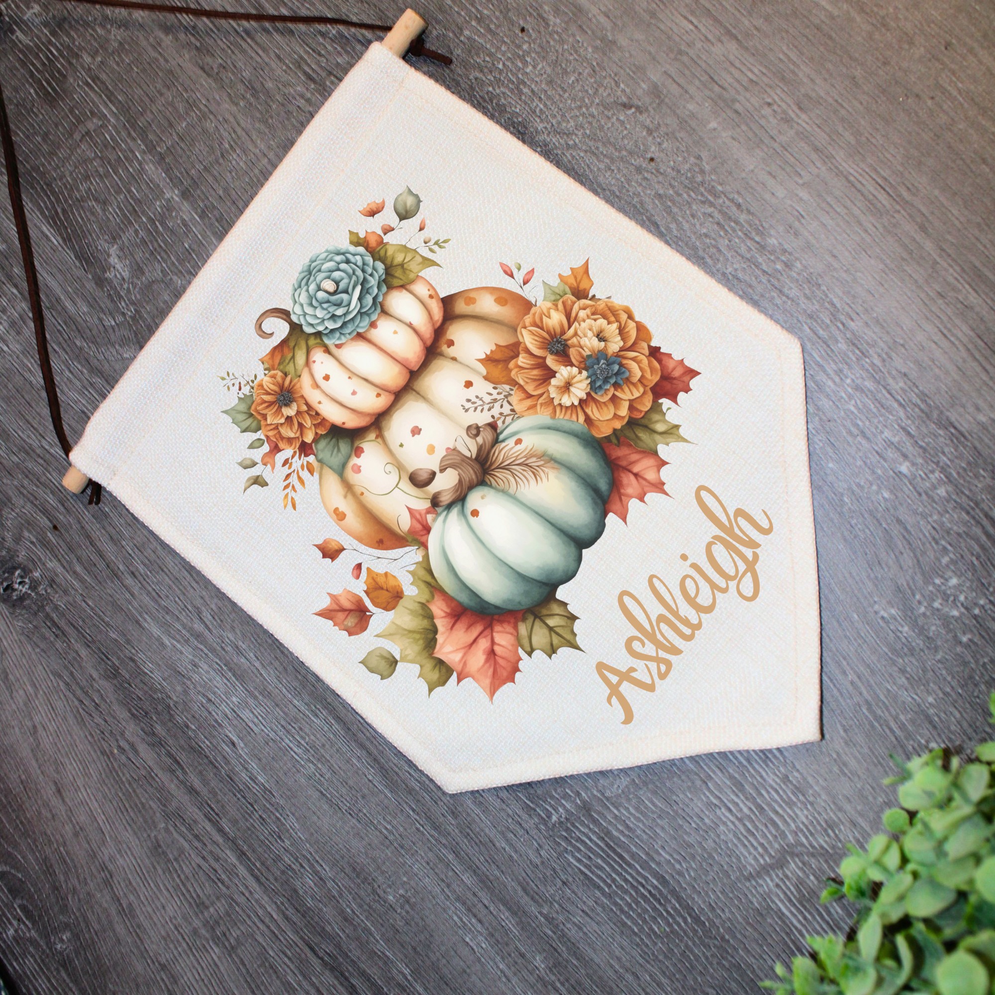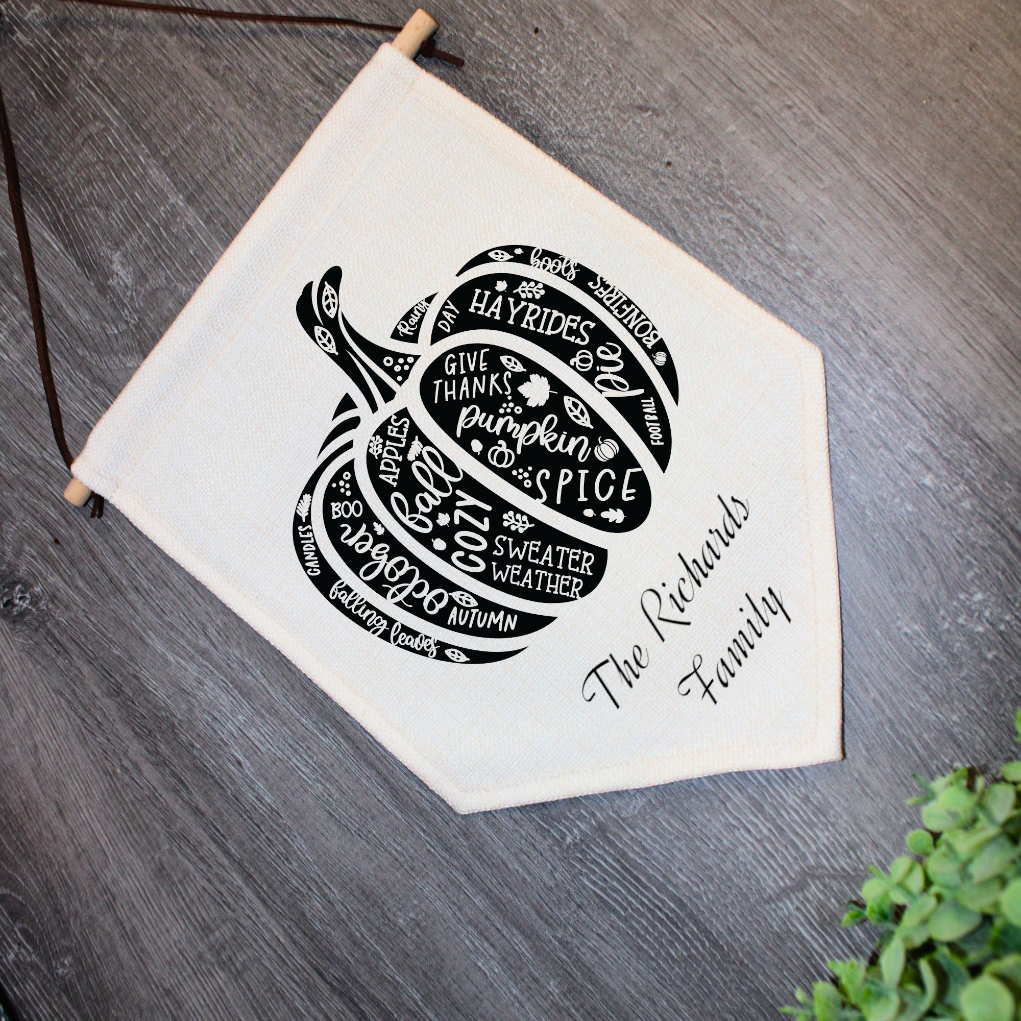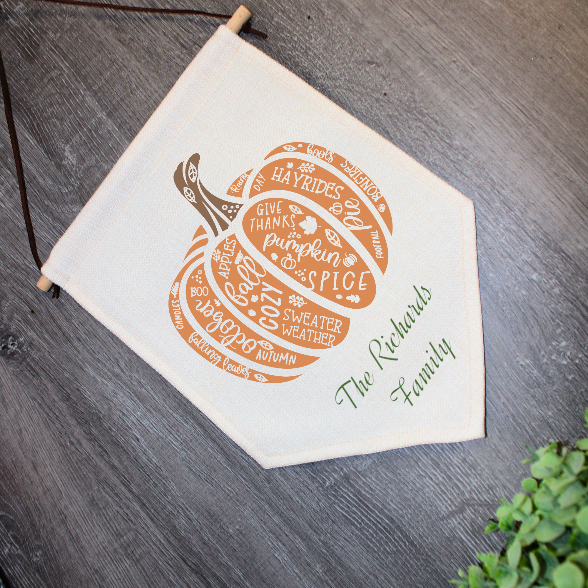 Introducing our Personalised Autumn Linen Flag, a charming seasonal decoration to celebrate the beauty of fall!