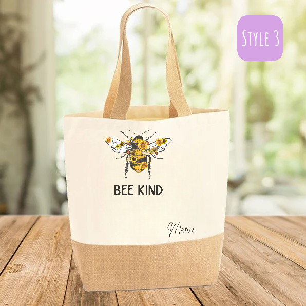 Shopping Bag Personalised Bee Kind Printed Canvas