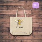 Our commitment to sustainability goes beyond style; all our reusable bags are durable, and made to withstand the test of time. By choosing our reusable Personalised ‘Bee Kind’ Canvas Tote Bag, you’re not just embracing a fashionable accessory but also contributing to the reduction of single-use plastics.