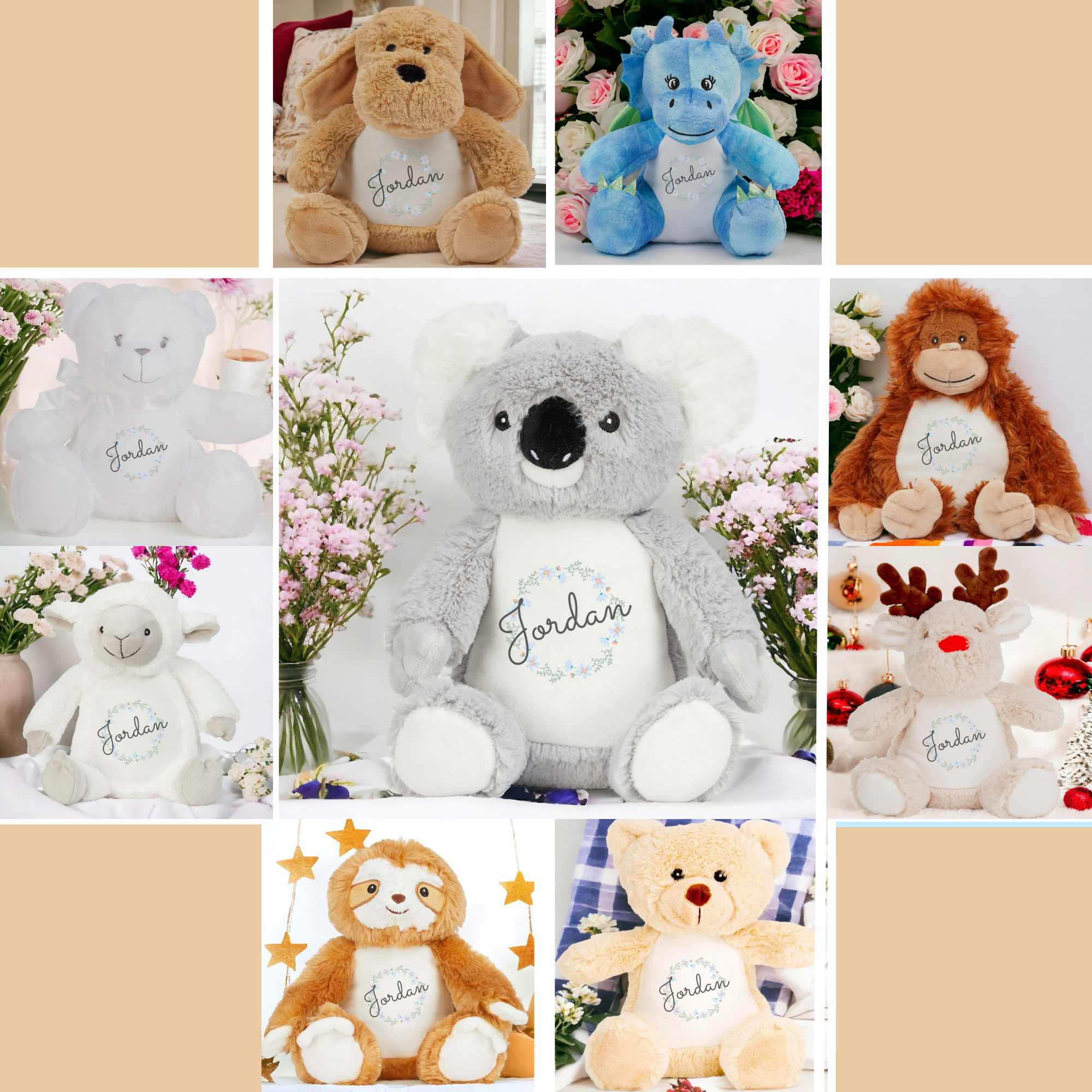Personalised Spring Time Wreath Plush Soft Toy | Custom Plush Toy | Cuddly Toy | Personalised Soft Toy