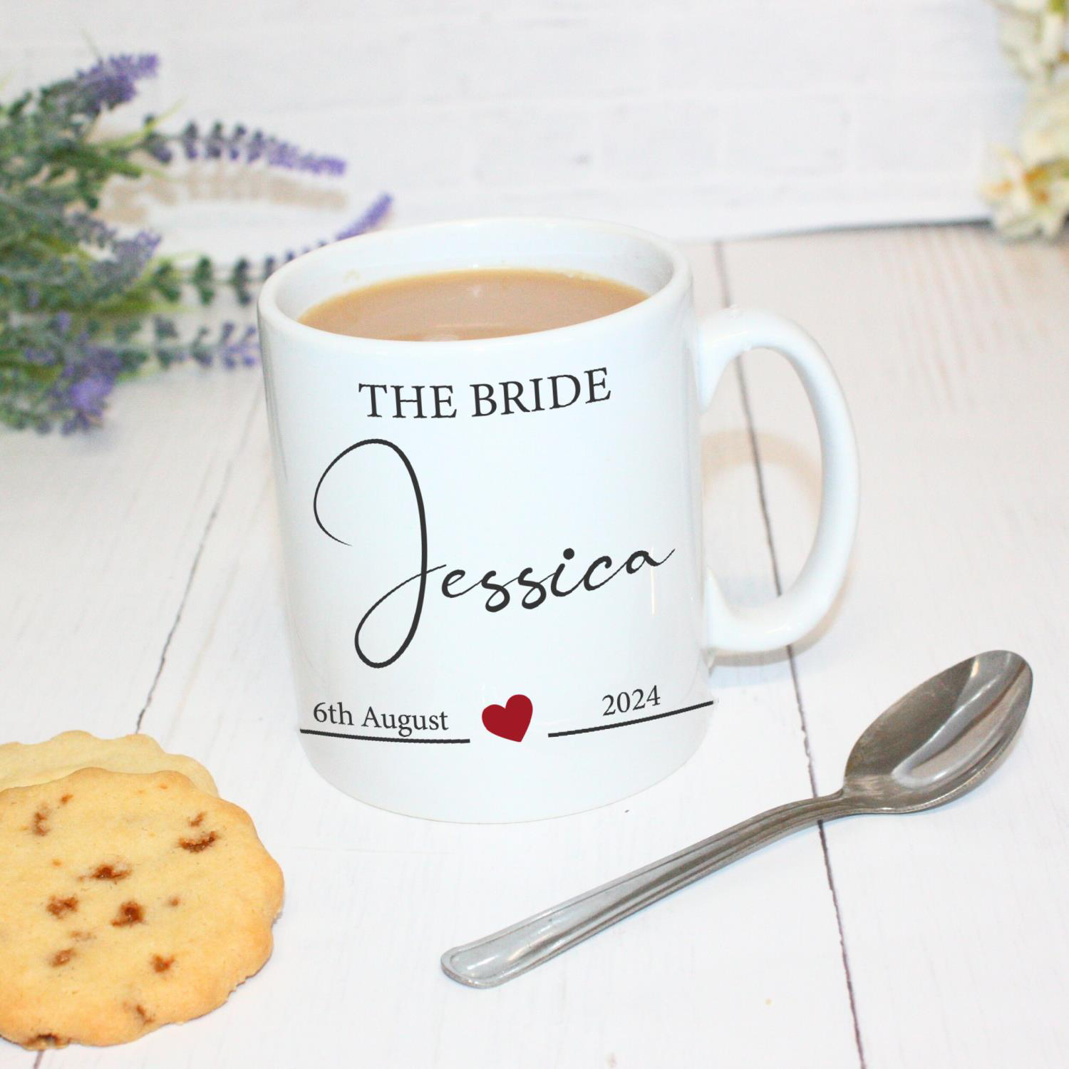Give the gift of a beautiful memory with our custom “Bride Mug with Heart” mug, a perfect addition to any wedding celebration.