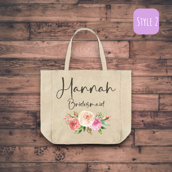 Introducing our eco-friendly and stylish reusable Personalised ‘Bridesmaid with Flower Motif’ Canvas Tote Bag, a perfect blend of sustainability and fashion. Our collection is thoughtfully designed to cater to diverse preferences, offering different looks and sizes. Each style boasts a unique charm, ensuring there’s a perfect bag for every occasion and individual taste.
