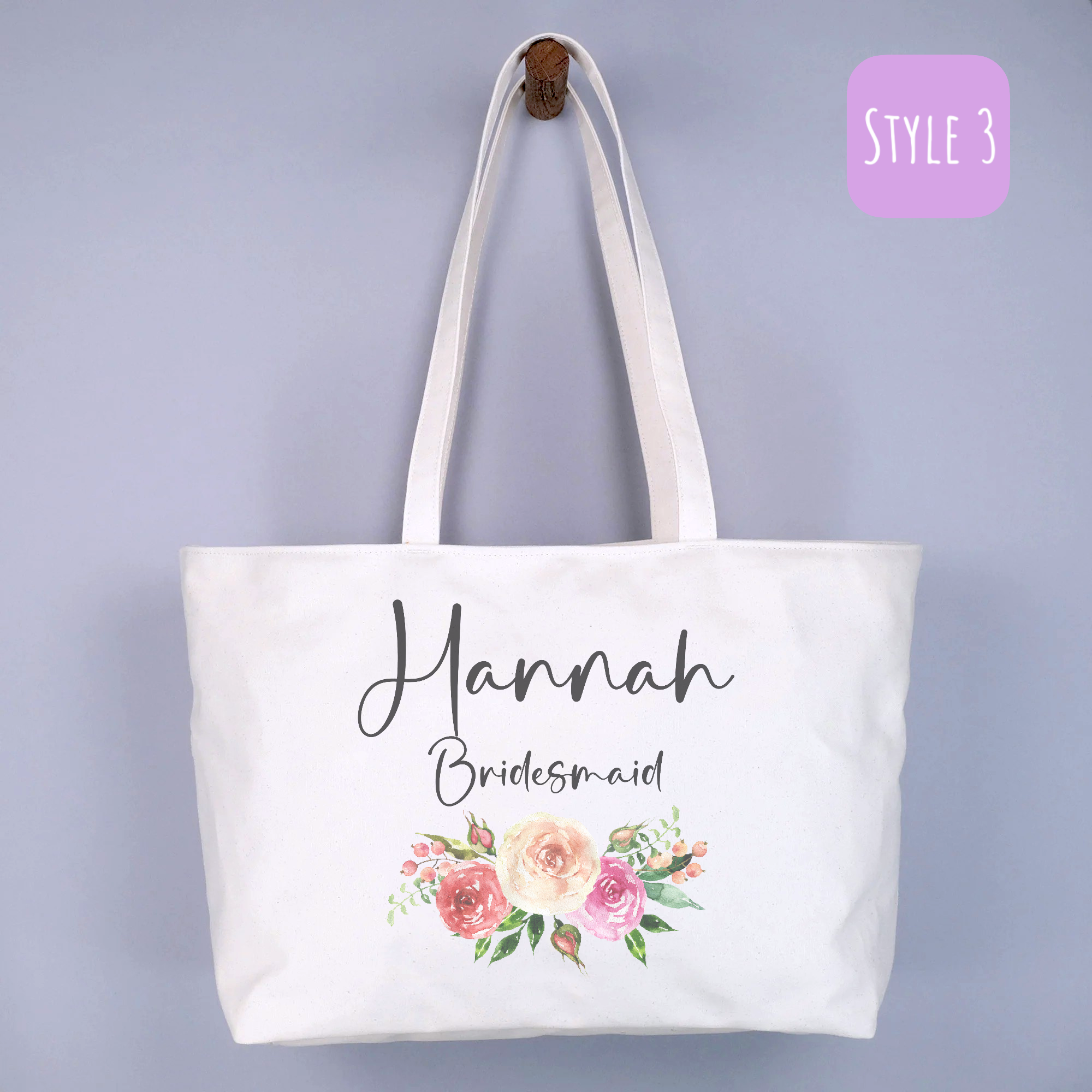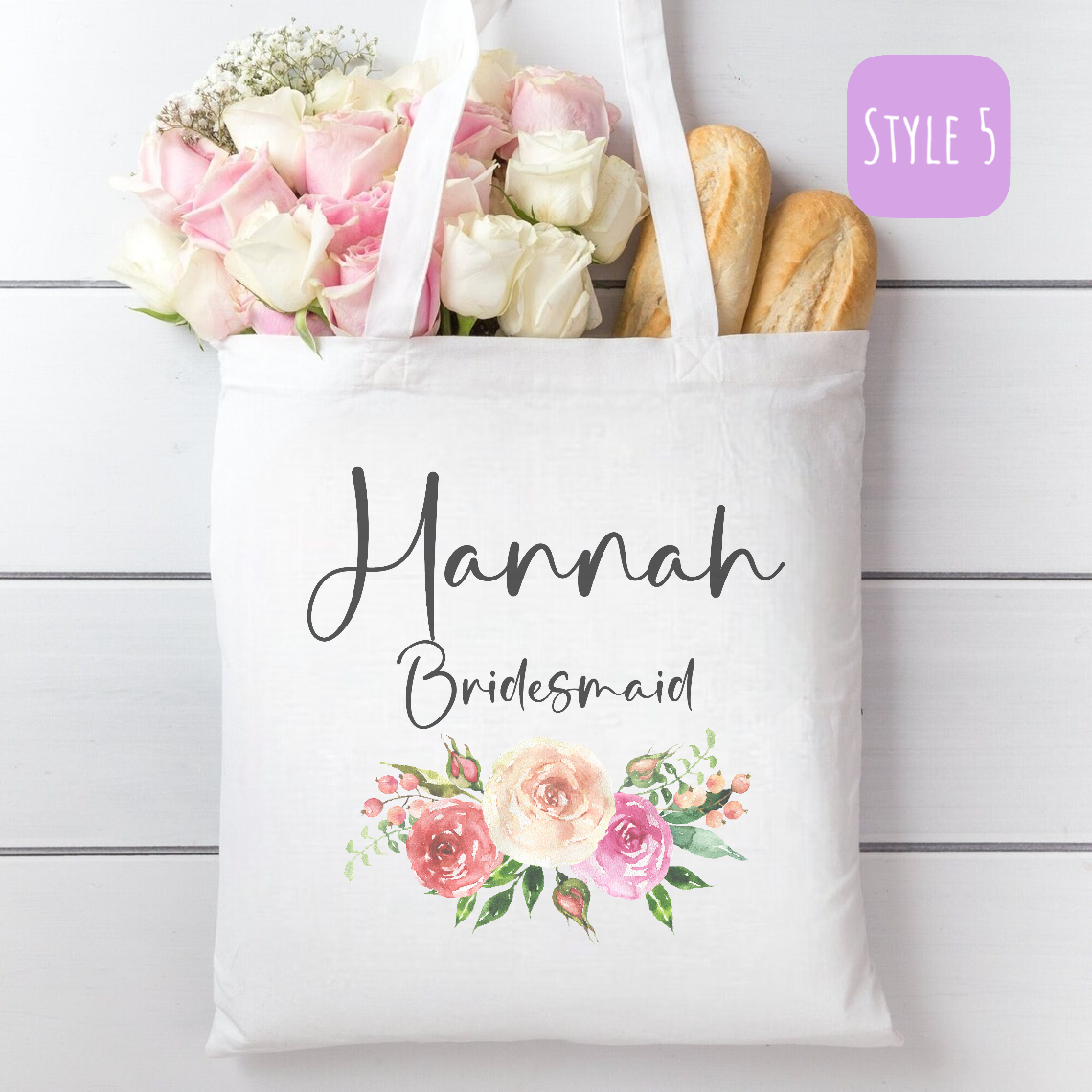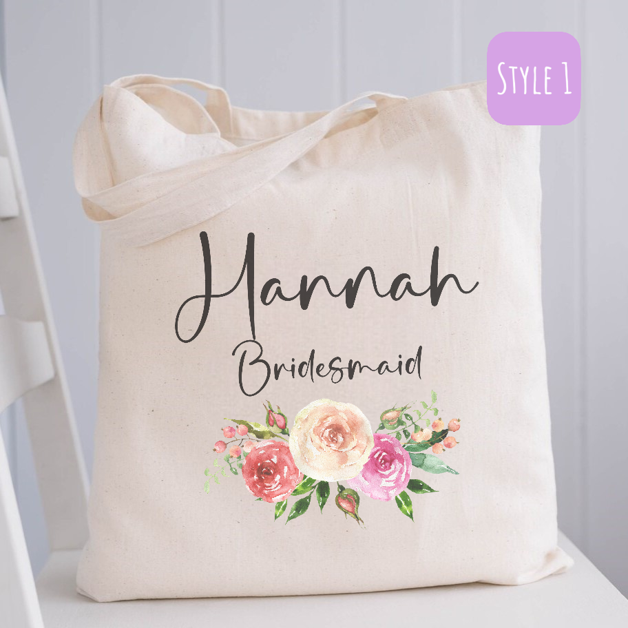 Personalised ‘Bridesmaid with Flower Motif’ Canvas Tote Bag