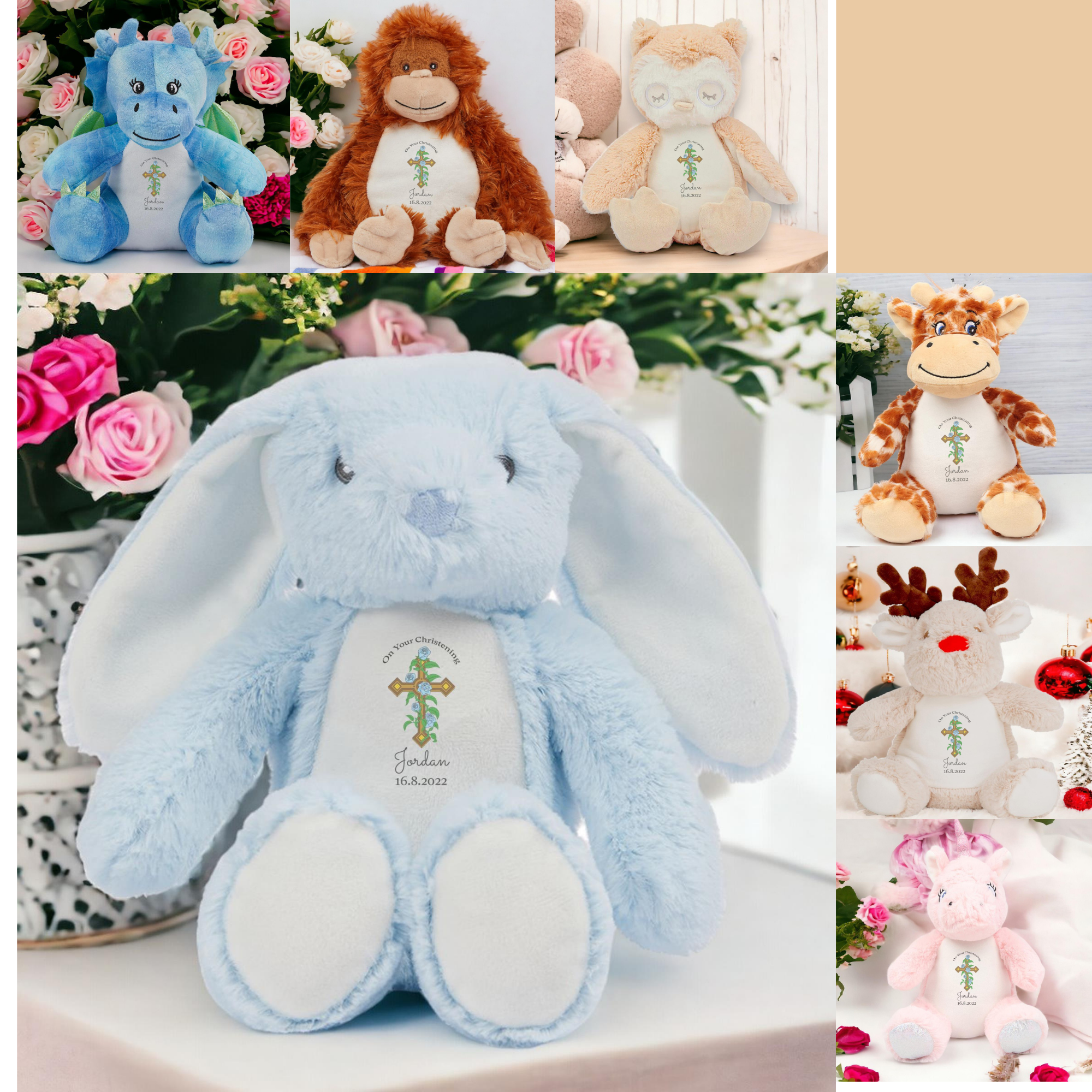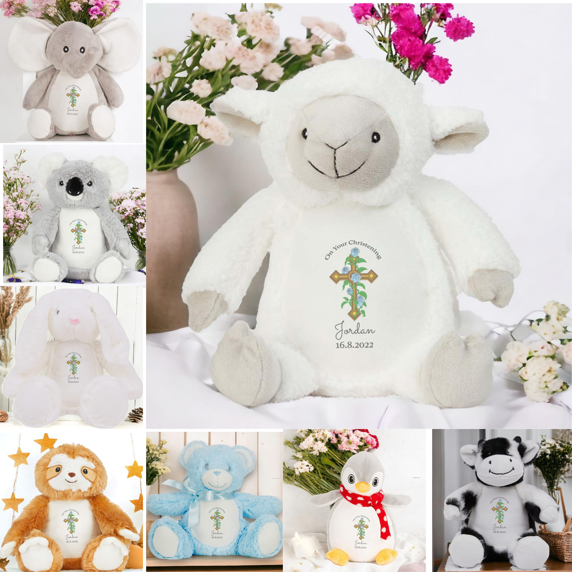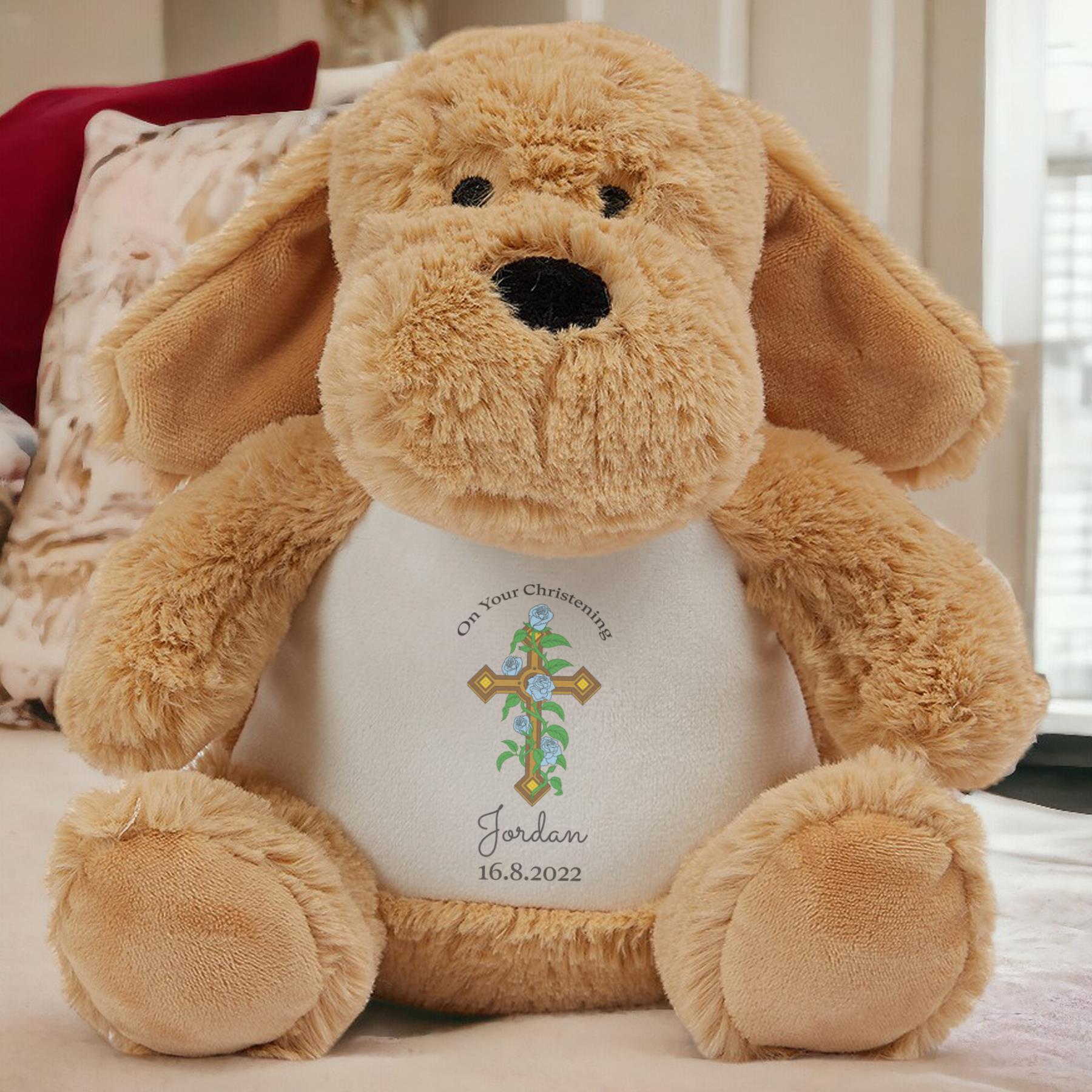 Introducing our exquisite Christening Plushie – Cross with Blue Flowers from our collection of Soft Cuddly Toys, meticulously crafted to mark the joyous occasion of christenings and baptisms. Crafted from luxurious 100% Polyester plush fabric and standing approximately 22-26cm tall, these toys are the epitome of softness and cuddliness. Our Custom Plush Toys and Custom Soft Toys offer a personalised touch that makes them the perfect choice for commemorating this sacred celebration. Each toy can be customised with names and dates transforming them into cherished Keepsake Gifts that capture the essence of this special day. Designed as Personalised Teddy Bears, these Soft Cuddly Toys symbolise the love and blessings bestowed upon the recipient during their christening or baptism. They serve as tangible reminders of faith, love, and the joyous memories shared with family and friends during this momentous occasion. Make every christening or baptism even more memorable with our range of Personalised Gifts. Whether it’s a Christening Gift or a Baptism Gift, our Soft Cuddly Toys are sure to become treasured keepsakes, cherished for years to come as a reminder of this significant celebration.