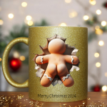 Available in 4 stunning styles, including White, Silver Glitter, Gold Glitter, and Blue Glitter, this 11oz custom mug offers a variety of vibrant finishes to match any taste. Whether you’re looking for a Christmas gift for him or her, this novelty mug is perfect for those who enjoy a quirky and fun design. Ideal as a gift for her, a gift for him, or a 3D wall break mug collector, this mug will make a memorable addition to any festive collection.