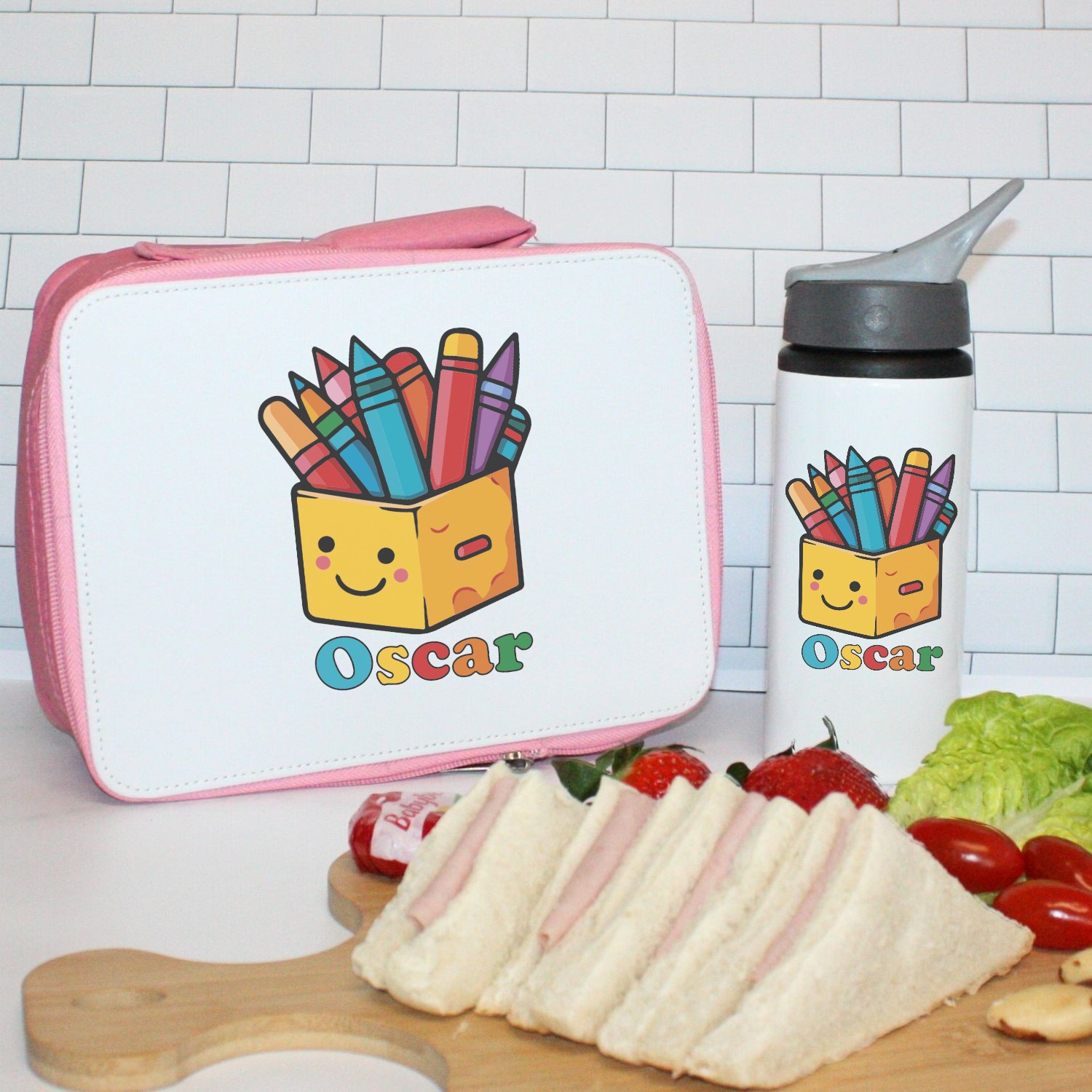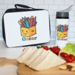 The front of the lunch box features a delightful image of a drawer with a smiley face holding crayons, adding a playful and creative touch to your child’s lunch routine. You can personalise the lunch box with your child’s name, making it a unique and special item for the Back to School season.