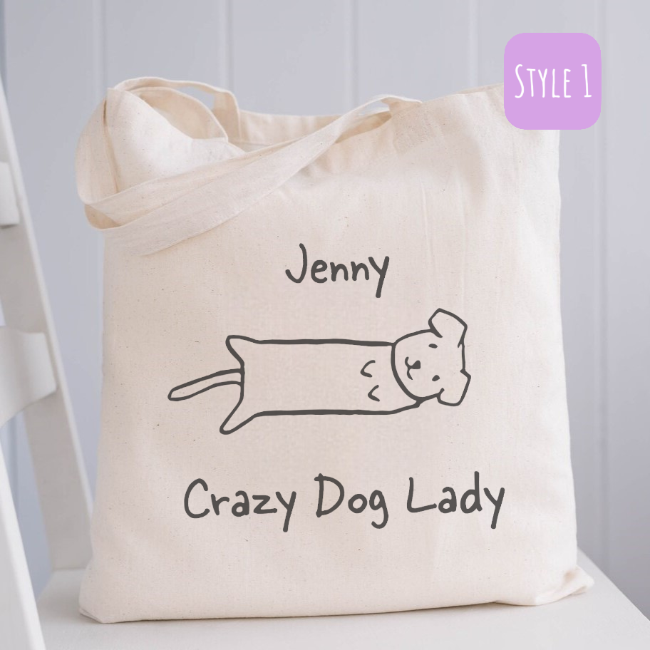 Personalised Crazy Dog Lady Canvas Tote Bag