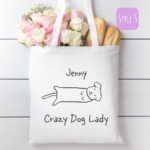 Our commitment to sustainability goes beyond style; all our reusable bags are durable, and made to withstand the test of time. By choosing our reusable Personalised Crazy Dog Lady Canvas Tote Bag, you’re not just embracing a fashionable accessory but also contributing to the reduction of single-use plastics.
