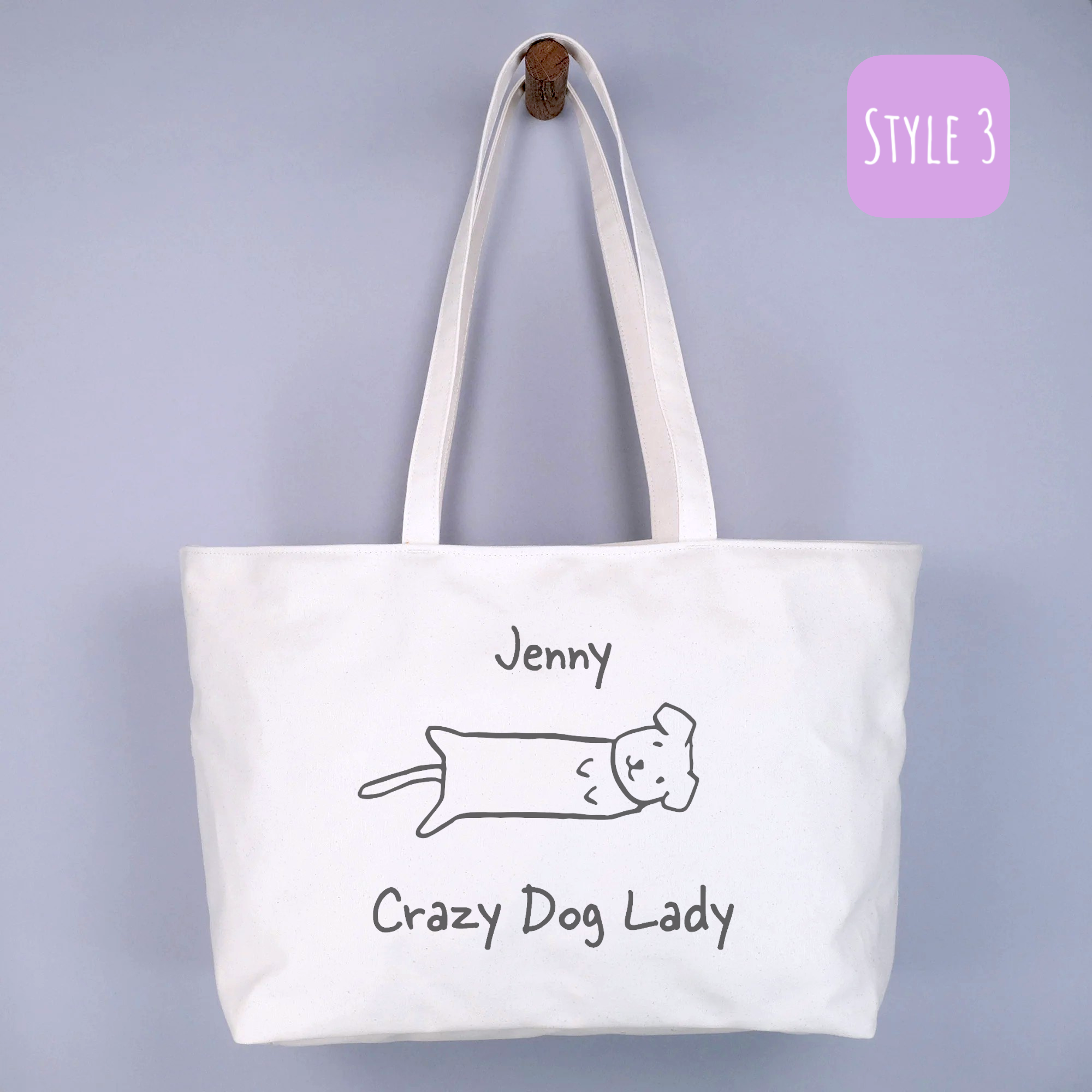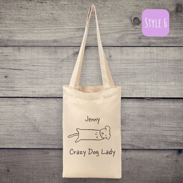 Introducing our eco-friendly and stylish reusable Personalised Crazy Dog Lady Canvas Tote Bag, a perfect blend of sustainability and fashion. Our collection is thoughtfully designed to cater to diverse preferences, offering different looks and sizes. Each style boasts a unique charm, ensuring there’s a perfect bag for every occasion and individual taste.