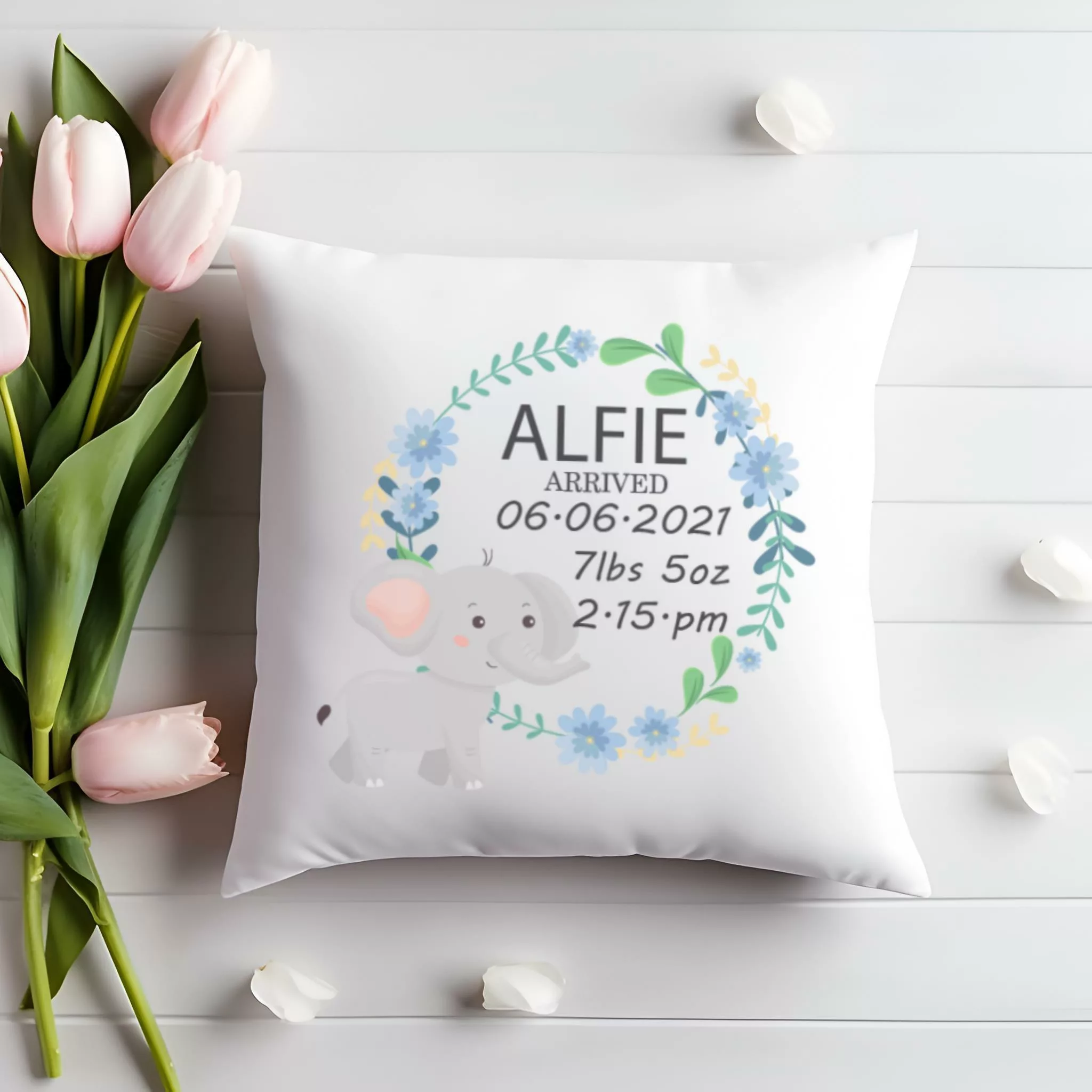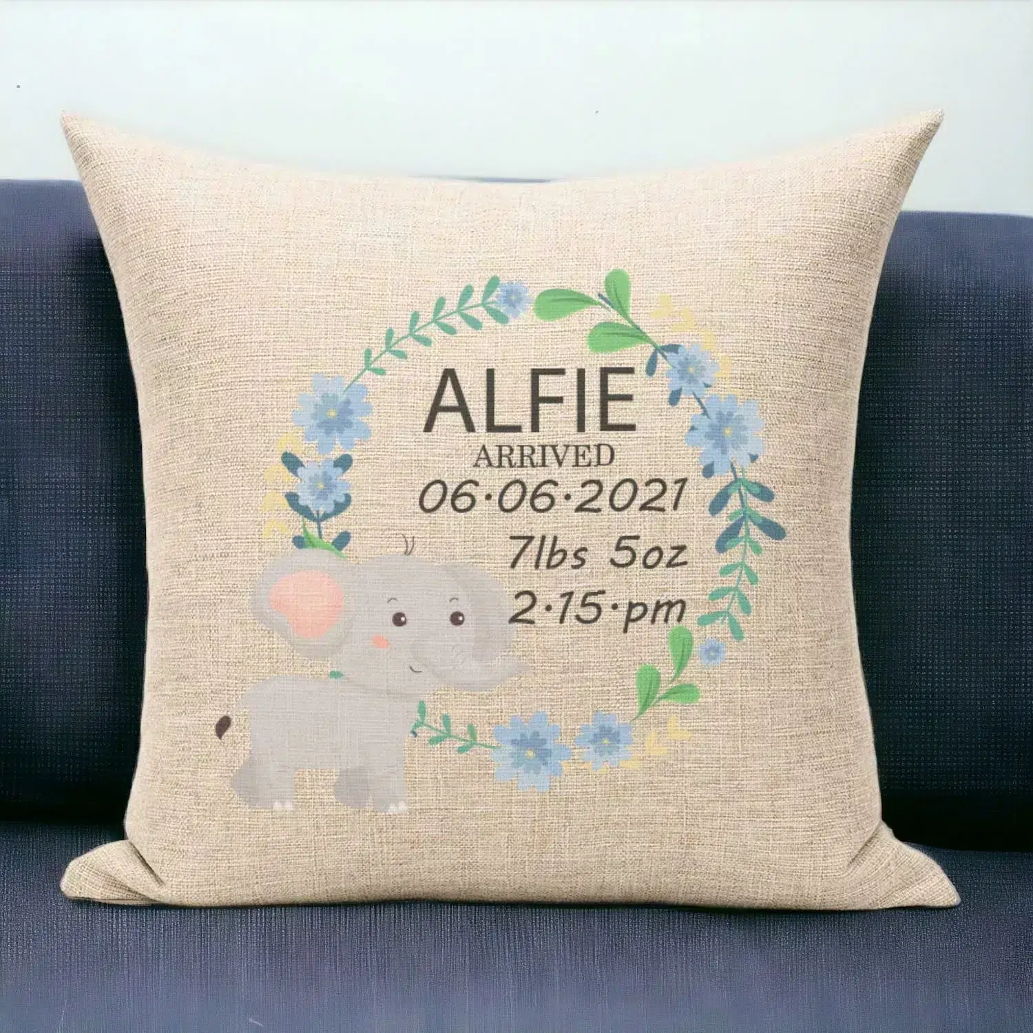 Personalised Cushion – Cute Elephant Newborn Gift