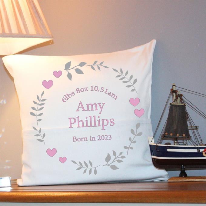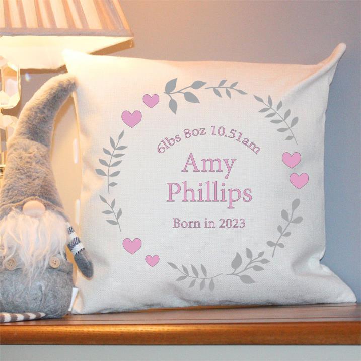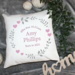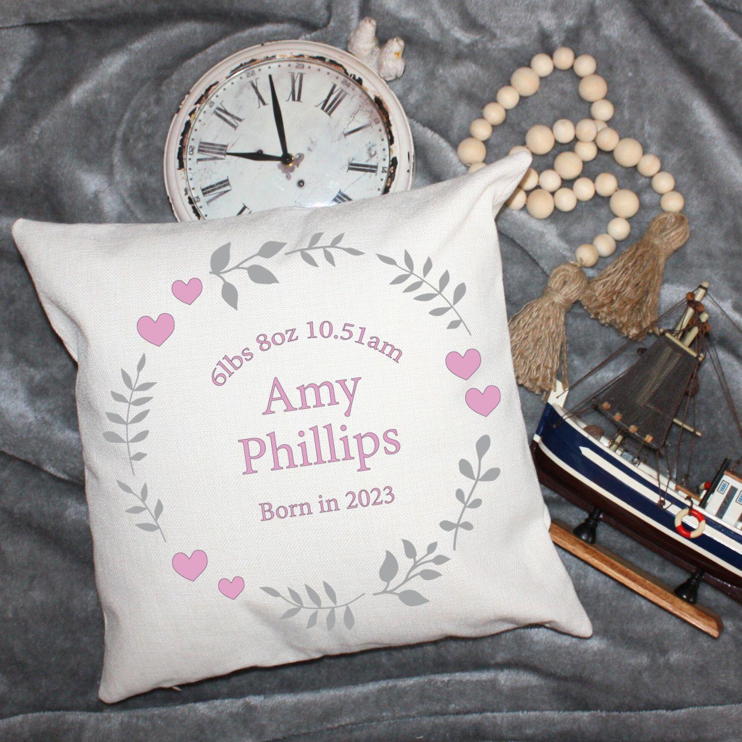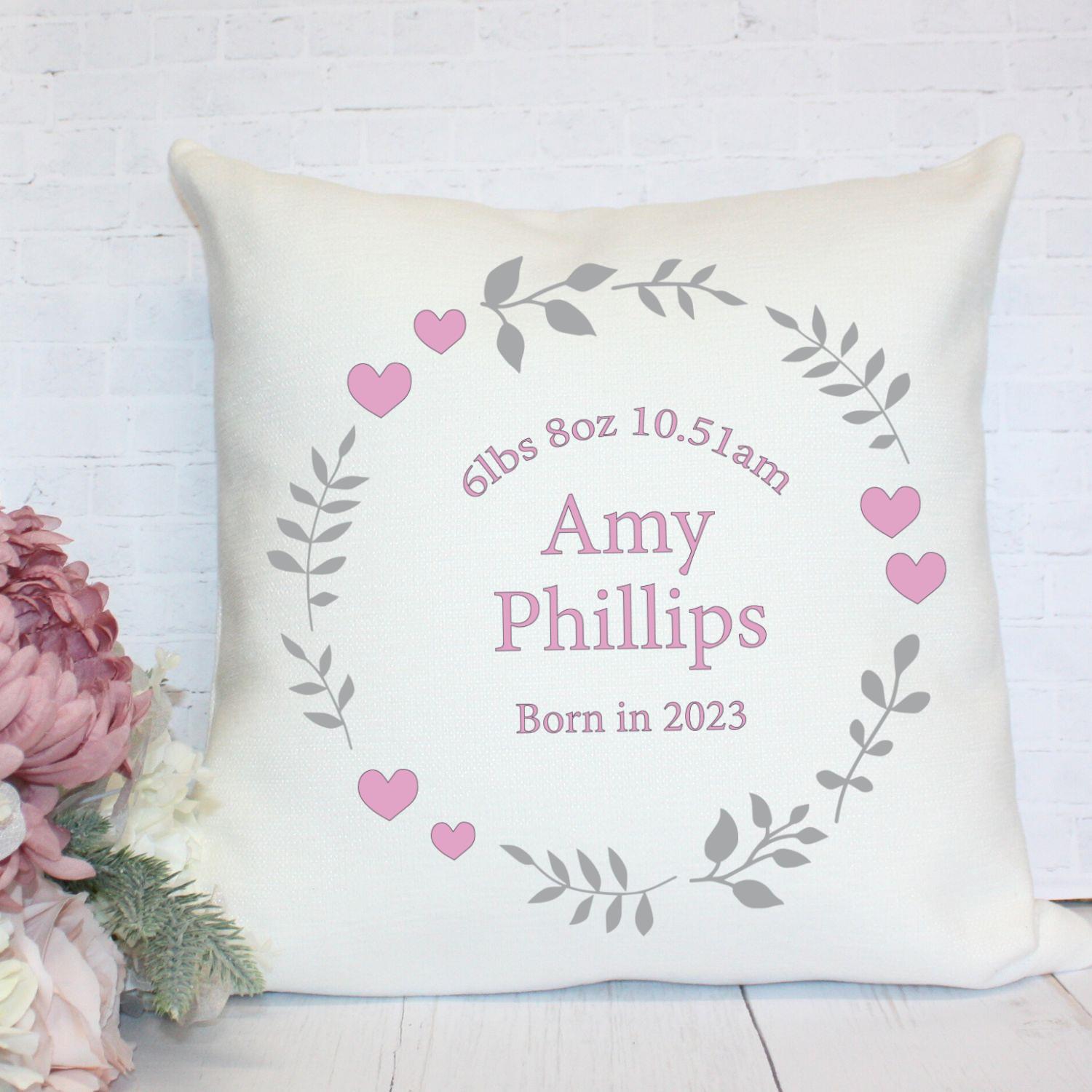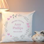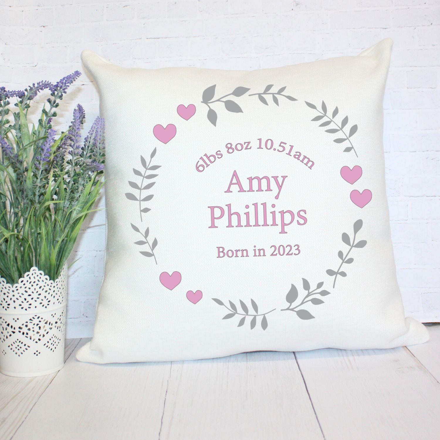 Personalised Cushion – Pink Hearts and Flowers