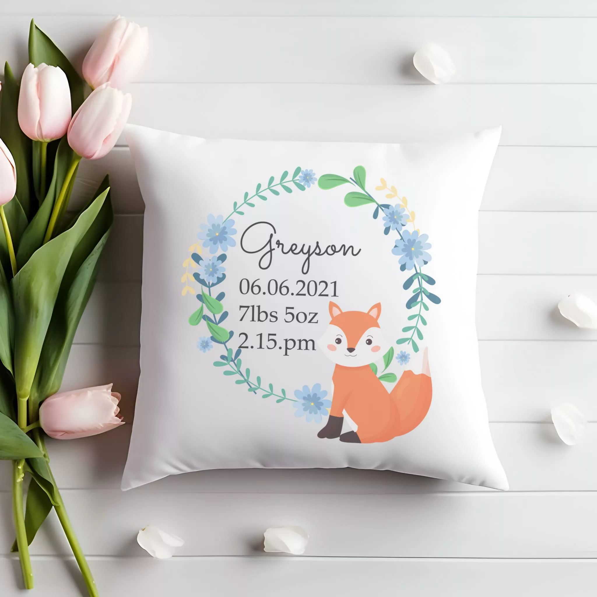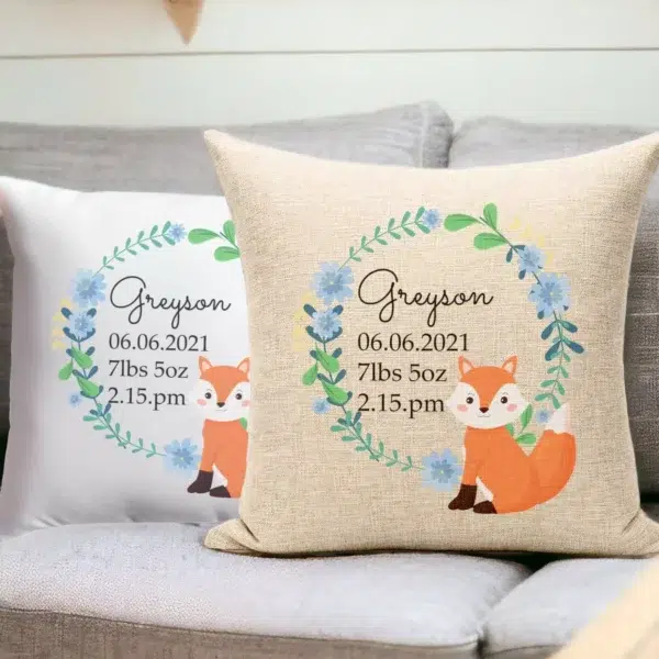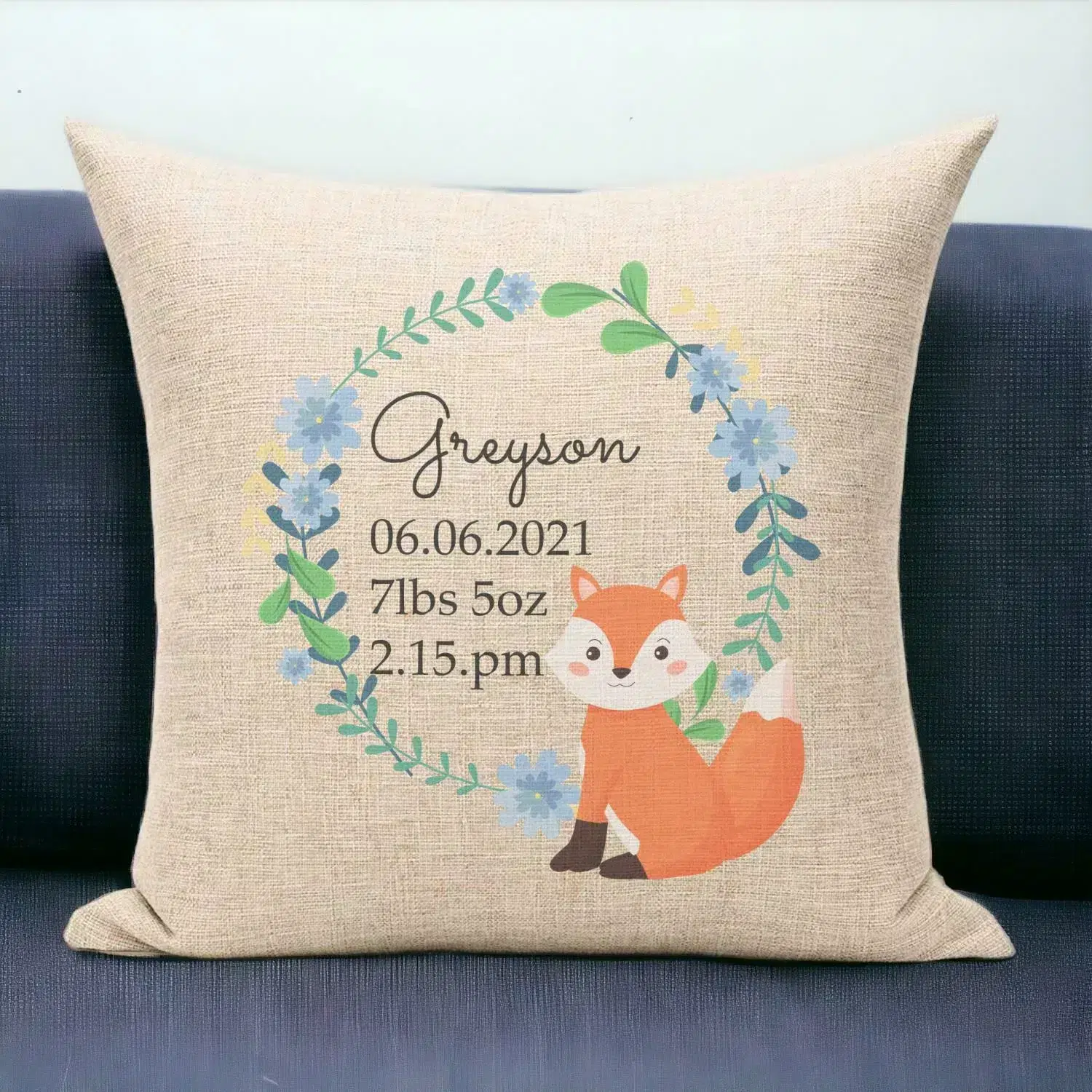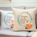 Personalised Cushion – Woodland Fox New Born Baby Gift