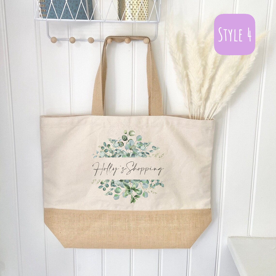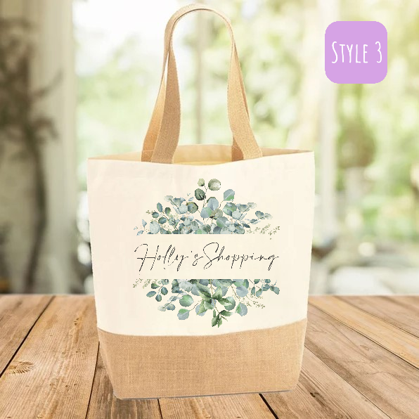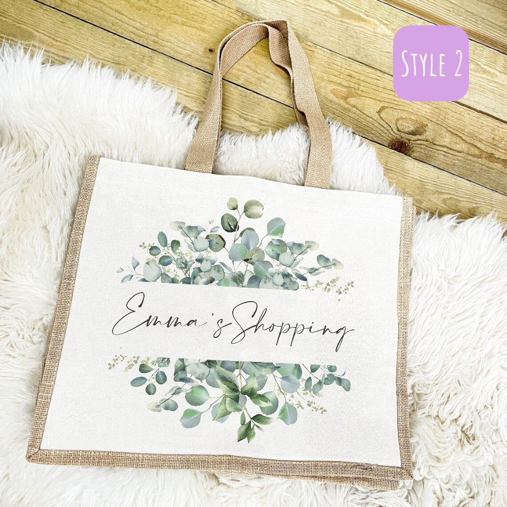 Introducing our eco-friendly and stylish Reusable Personalised ‘Eucalyptus’ Shopping Bag, thoughtfully crafted with a blend of natural jute and durable polyester, offering you the perfect fusion of sustainability and functionality. Designed to make a positive impact on the environment, this bag is a testament to our commitment to reducing single-use plastic waste.