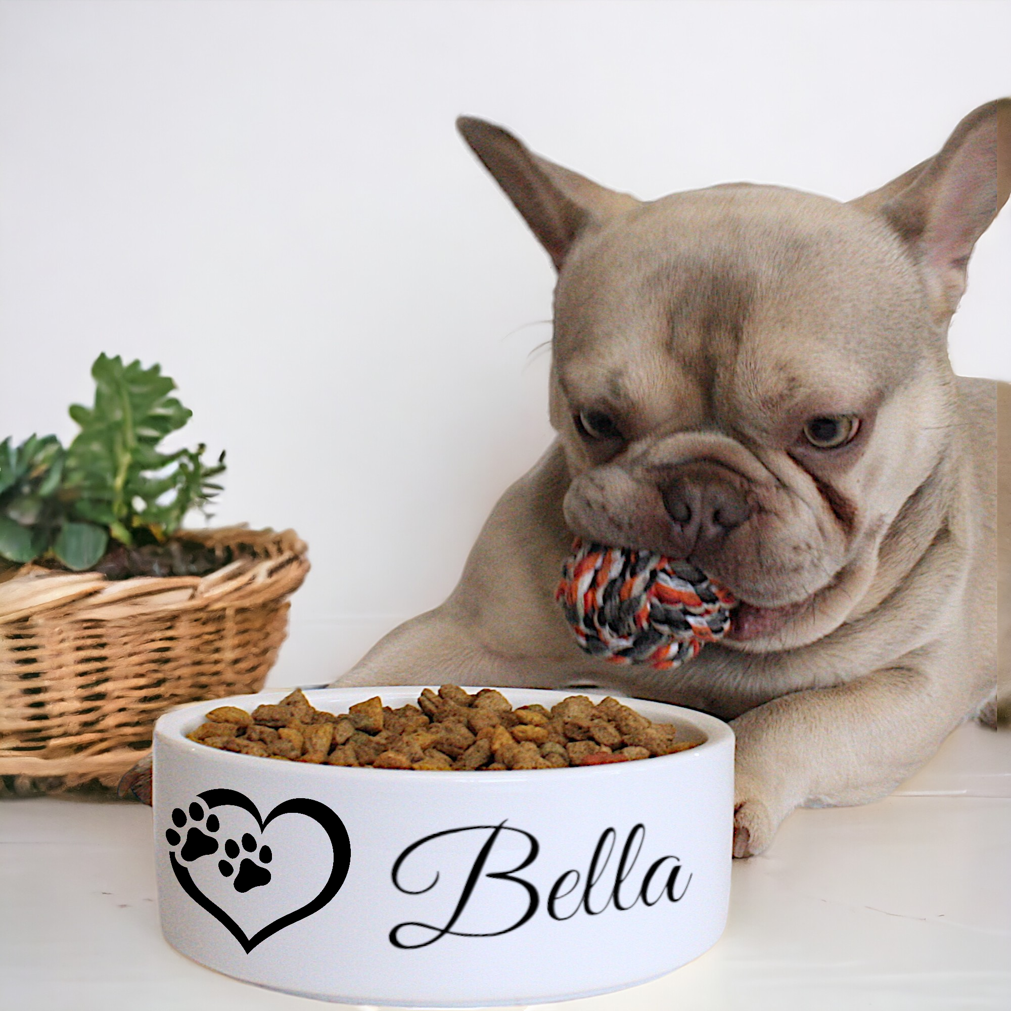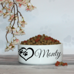 Introducing our Personalised Ceramic Pet Bowl, perfect for your beloved furry friend! This high-quality, durable ceramic bowl is designed to add a touch of love to your pet’s mealtime. Adorned with a charming image of a heart and two paw prints, this bowl can be customised with your pet’s name, making it a truly unique piece.