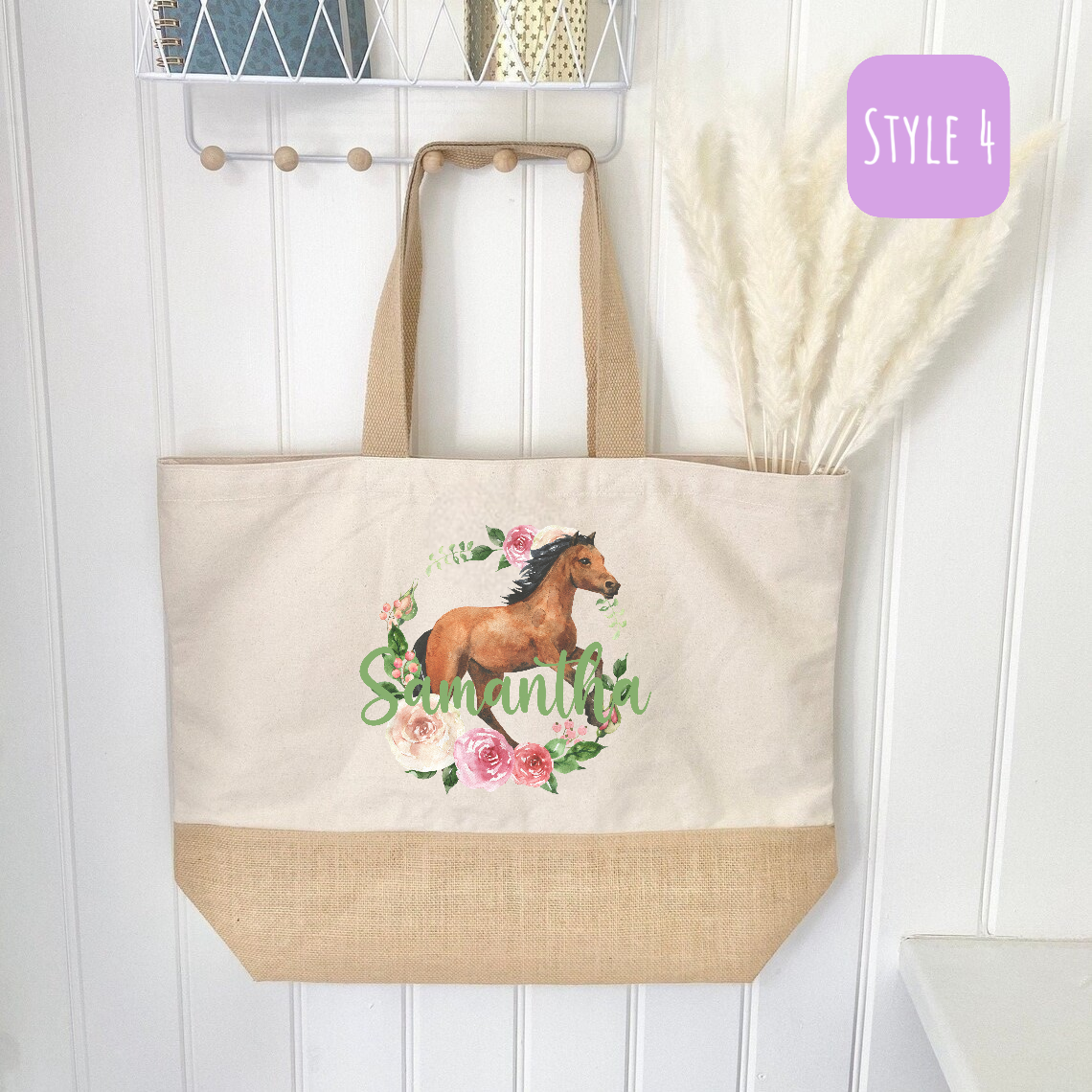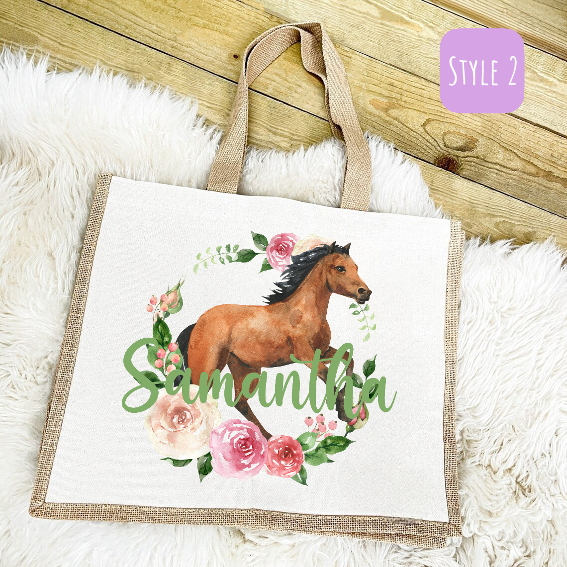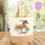 Introducing our eco-friendly and stylish Reusable Personalised ‘Horse within Flowers’ Shopping Bag, thoughtfully crafted with a blend of natural jute and durable polyester, offering you the perfect fusion of sustainability and functionality. Designed to make a positive impact on the environment, this bag is a testament to our commitment to reducing single-use plastic waste.