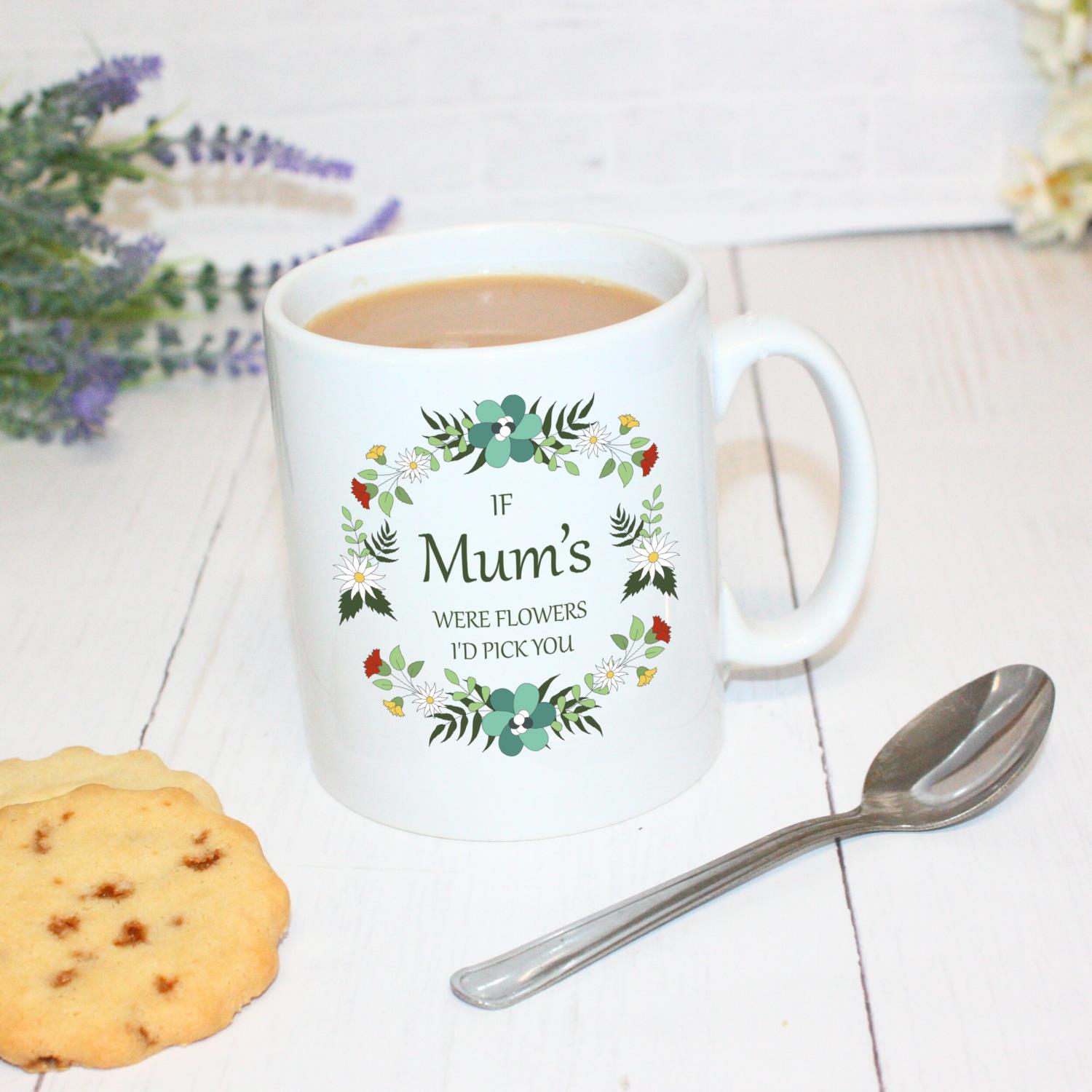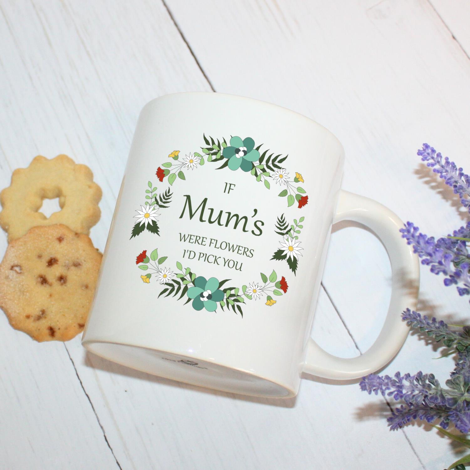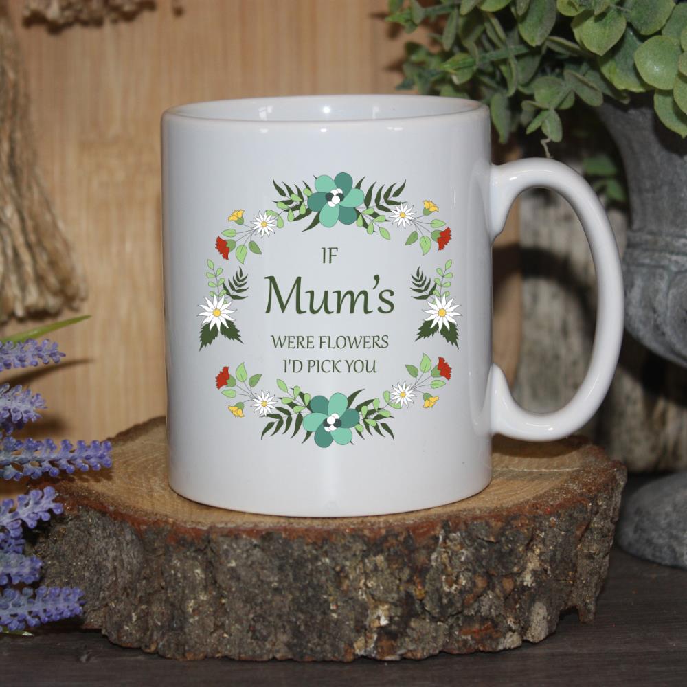 Show Mum how much she means to you with this beautiful and personalised flower wreath mug. It’s the perfect way to say, “If Mums Were Flowers I’d Pick You.”