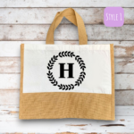 Make a statement for the planet without compromising on style. Choose the Reusable Personalised ‘Leaf Ring with Monogram’ Shopping Bag that resonates with your personality, and take it a step further by personalising it with your name, a special message, or unique design. Contribute to a greener, cleaner future while showcasing your individuality with our jute and polyester blend bags – the perfect harmony of style, durability, and environmental responsibility.