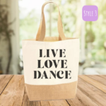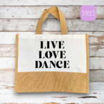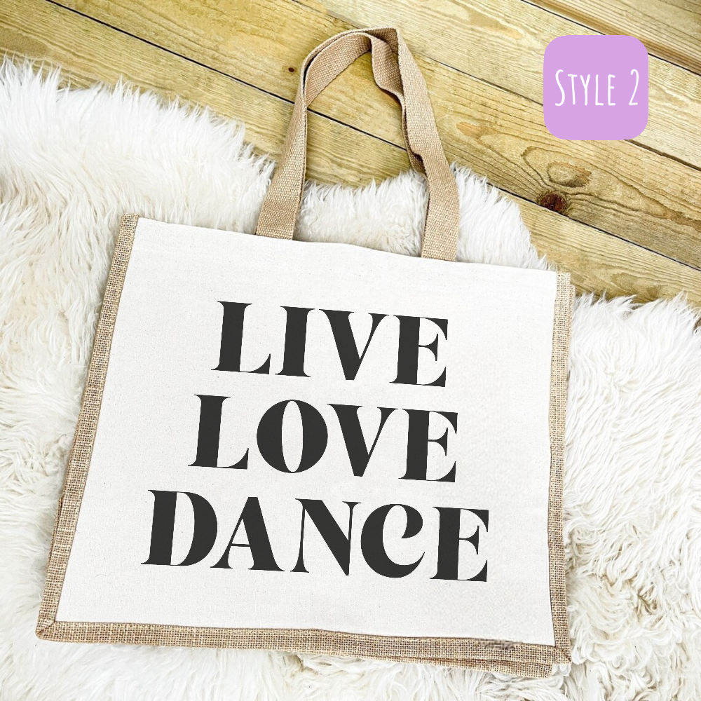 Introducing our eco-friendly and stylish Reusable Personalised ‘Live, Love, Dance’ Shopping Bag, thoughtfully crafted with a blend of natural jute and durable polyester, offering you the perfect fusion of sustainability and functionality. Designed to make a positive impact on the environment, this bag is a testament to our commitment to reducing single-use plastic waste.