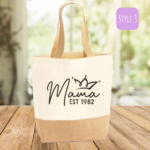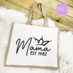 Make a statement for the planet without compromising on style. Choose the Reusable Personalised ‘Mama Est [Year]’ Shopping Bag that resonates with your personality, and take it a step further by personalising it with your name, a special message, or unique design. Contribute to a greener, cleaner future while showcasing your individuality with our jute and polyester blend bags – the perfect harmony of style, durability, and environmental responsibility.