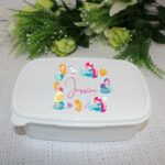 Introducing our Personalised Mermaid Lunch Box – the perfect blend of fun and functionality for your little one’s mealtime! With dimensions of 17.8cm by 12cm by 5.9cm, this vibrant lunch box is designed to make every lunch break an adventure. Featuring brightly-coloured mermaids on the lid, it adds a touch of excitement to your child’s daily routine. There’s a special space in the middle for adding the owner’s name, making it uniquely theirs.