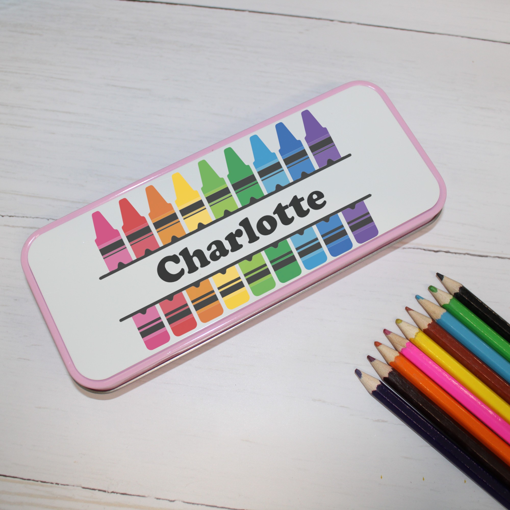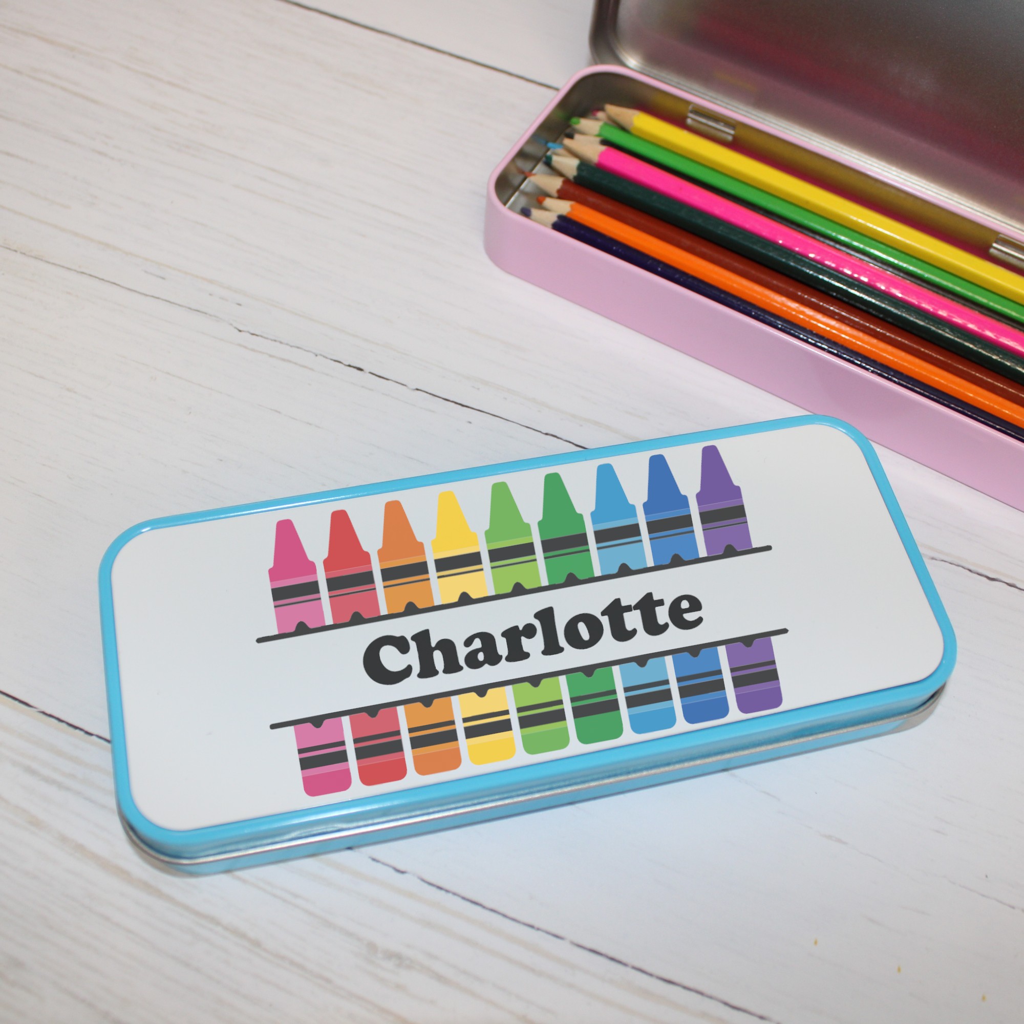 Personalised Metal Pencil Tin – Crayons | Cute Crayon Pencil Case