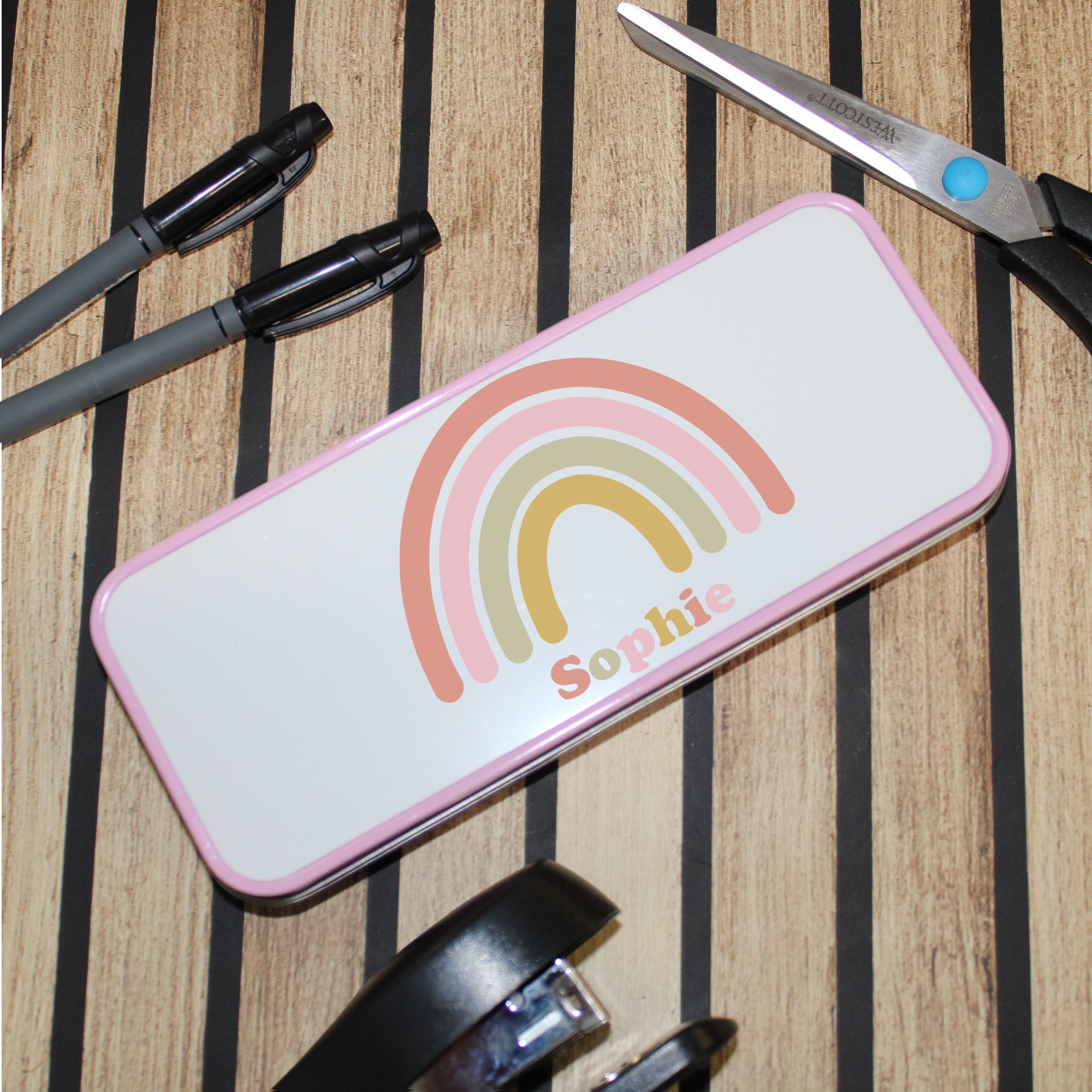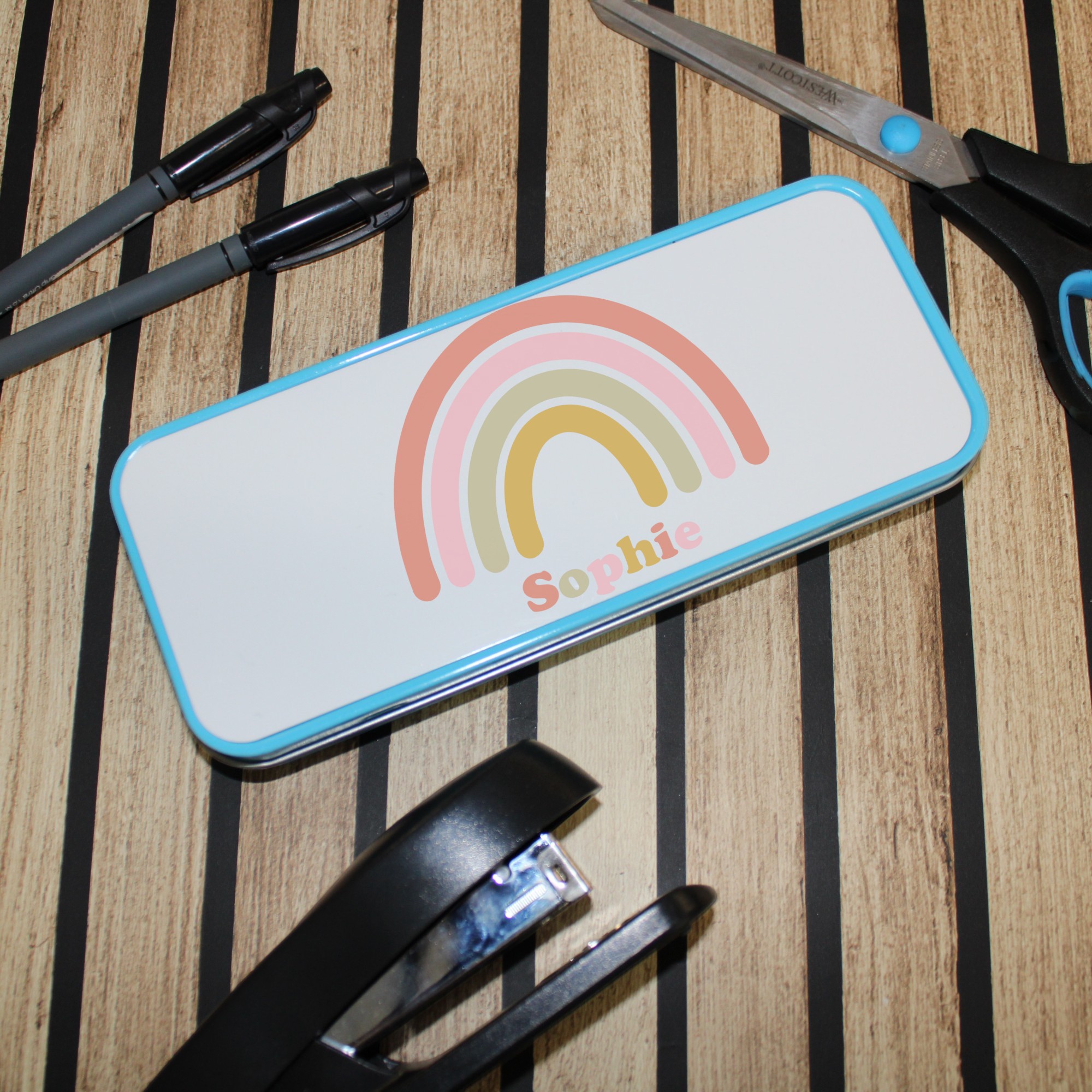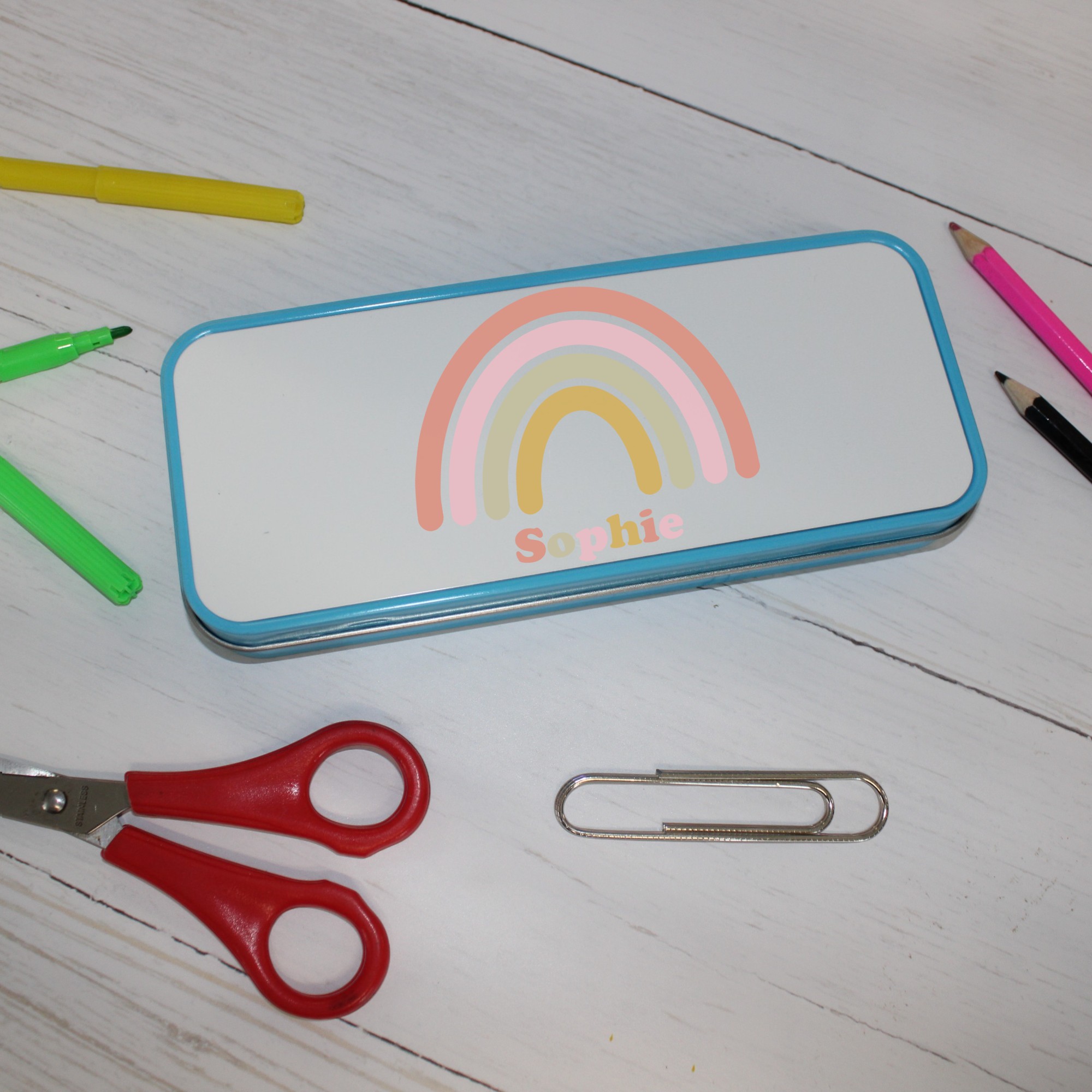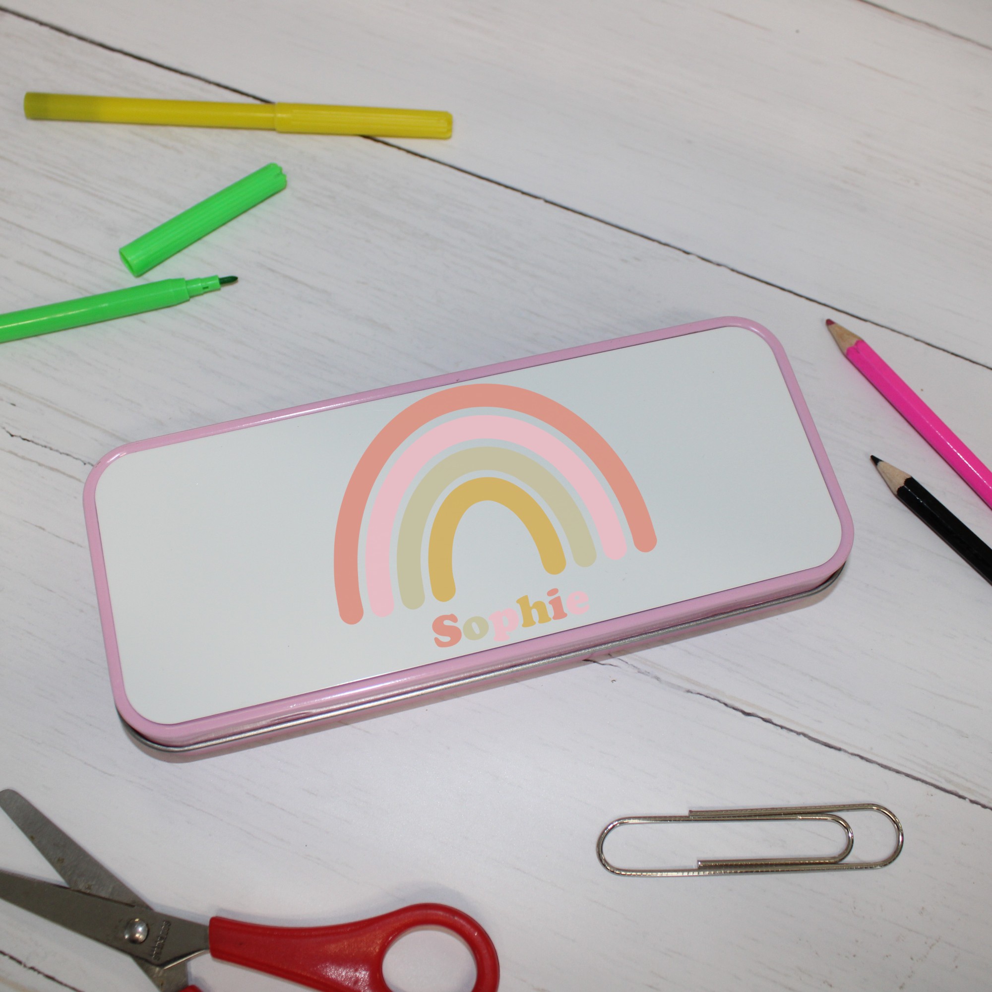 Personalised Metal Pencil Tin – Pastel Rainbow | Cute Crayon Pencil Case