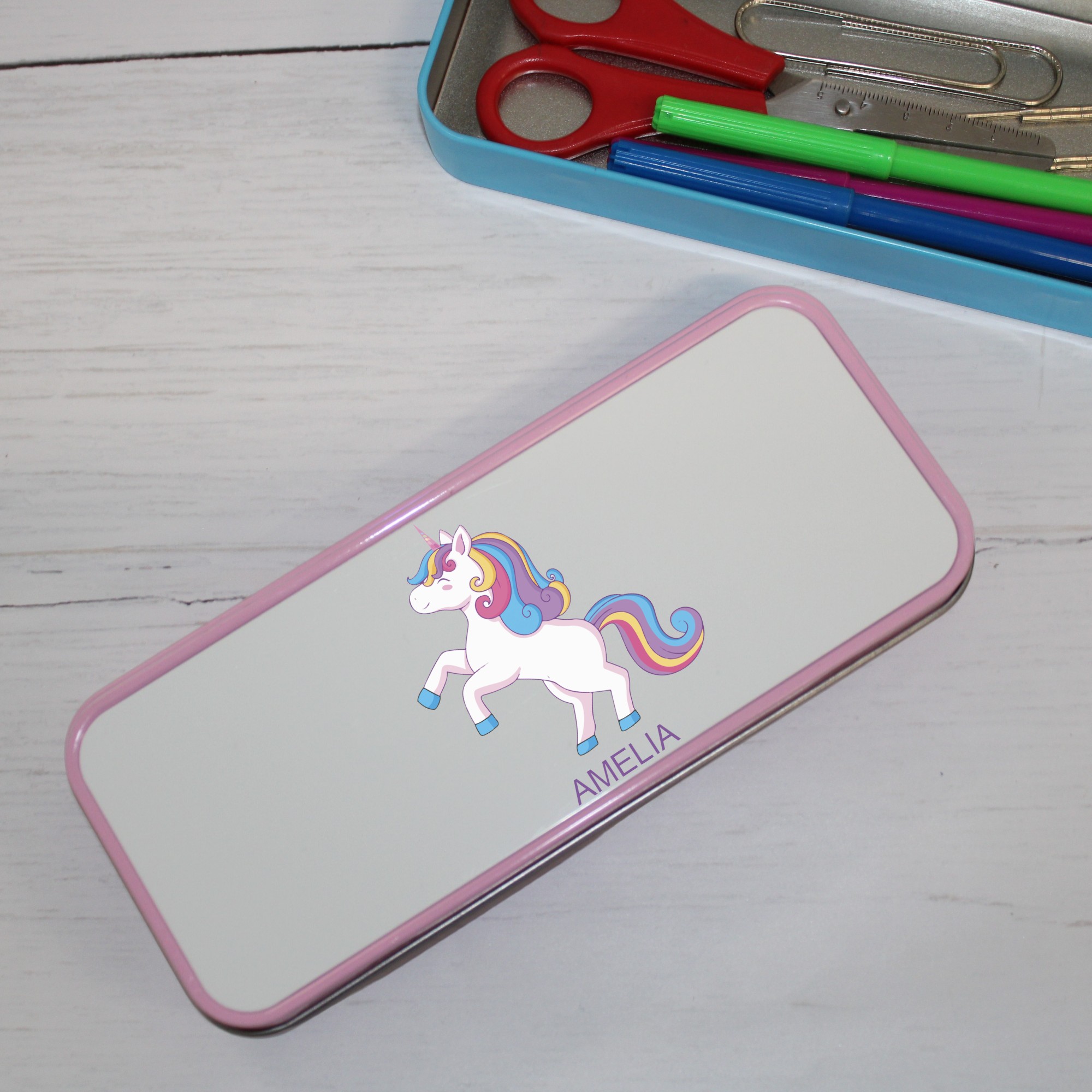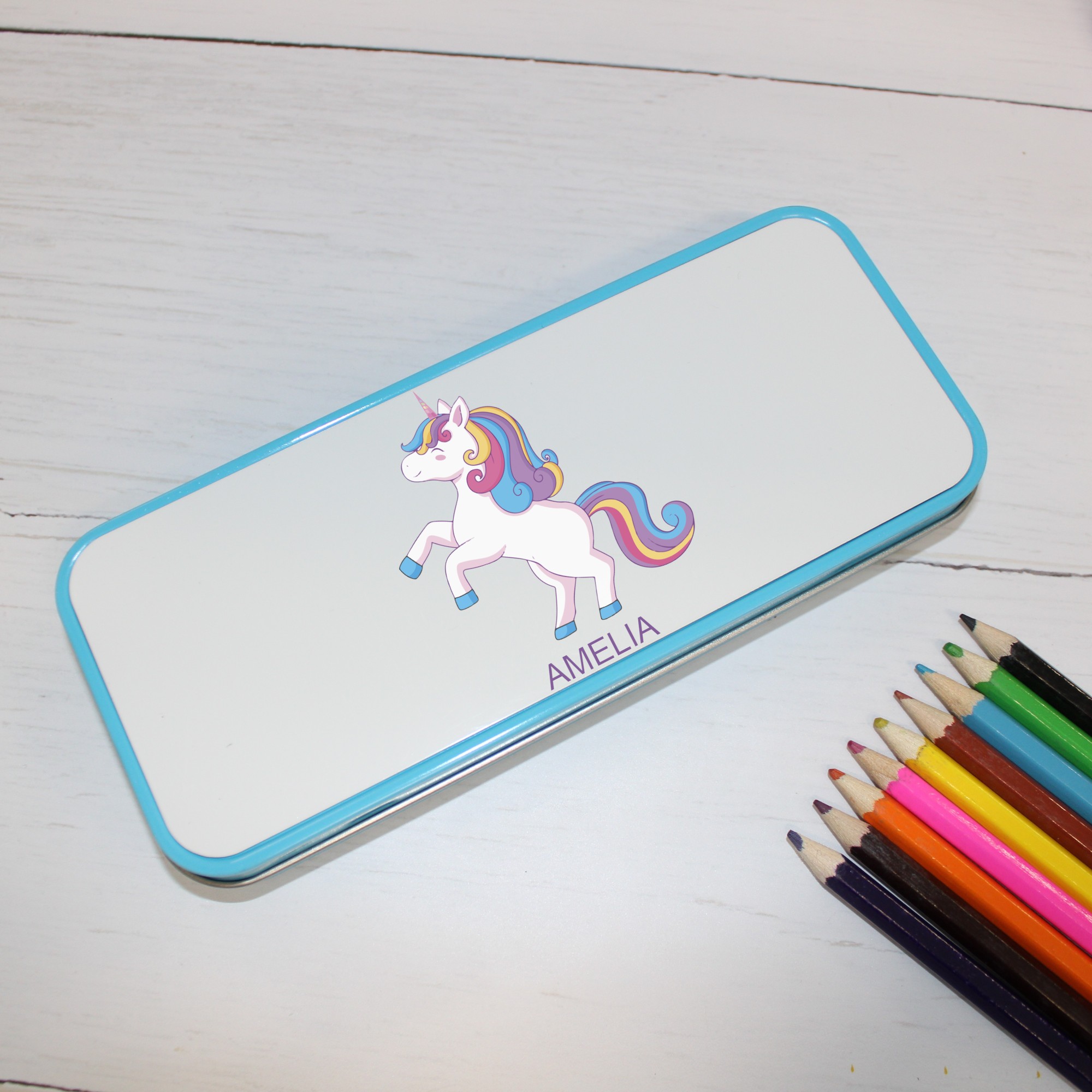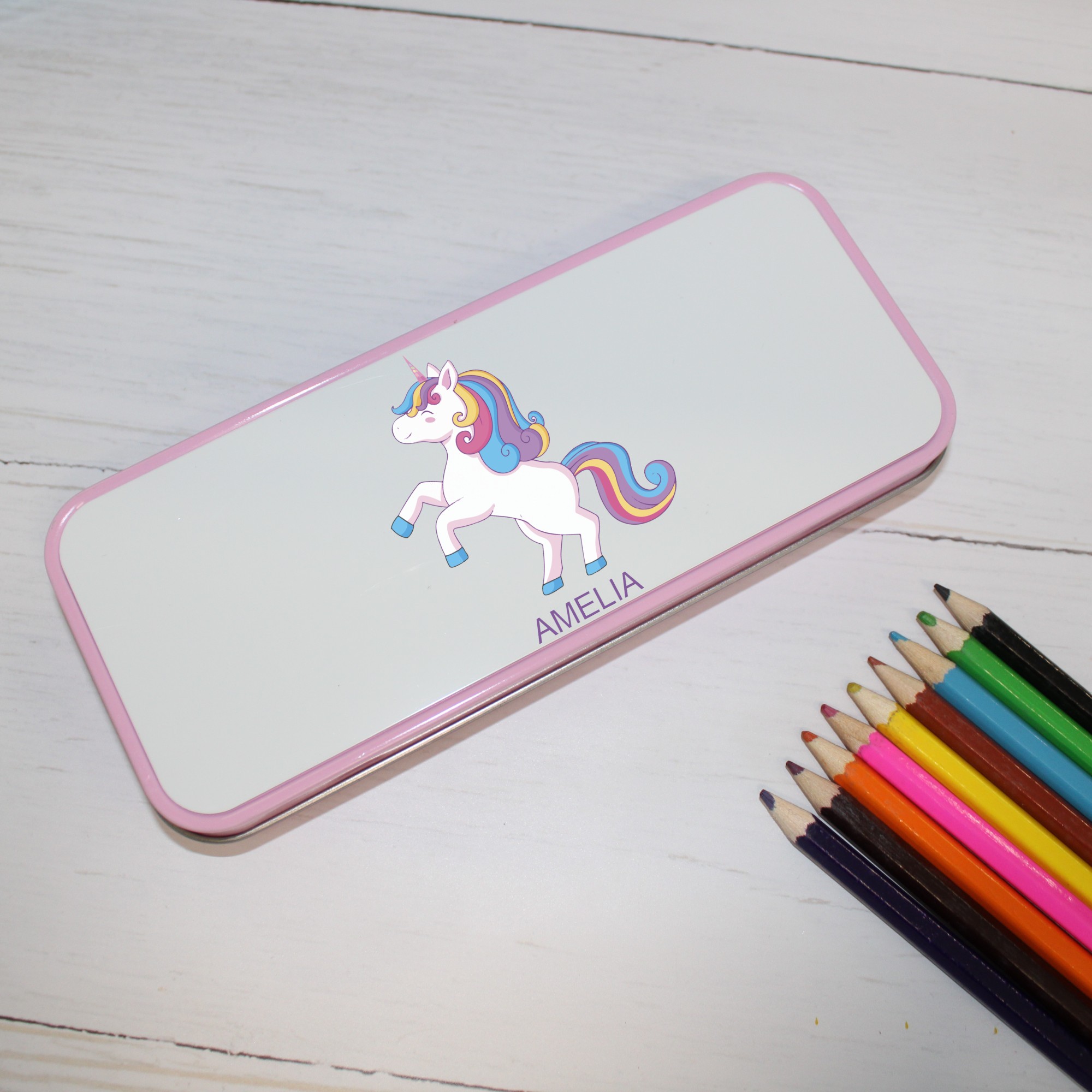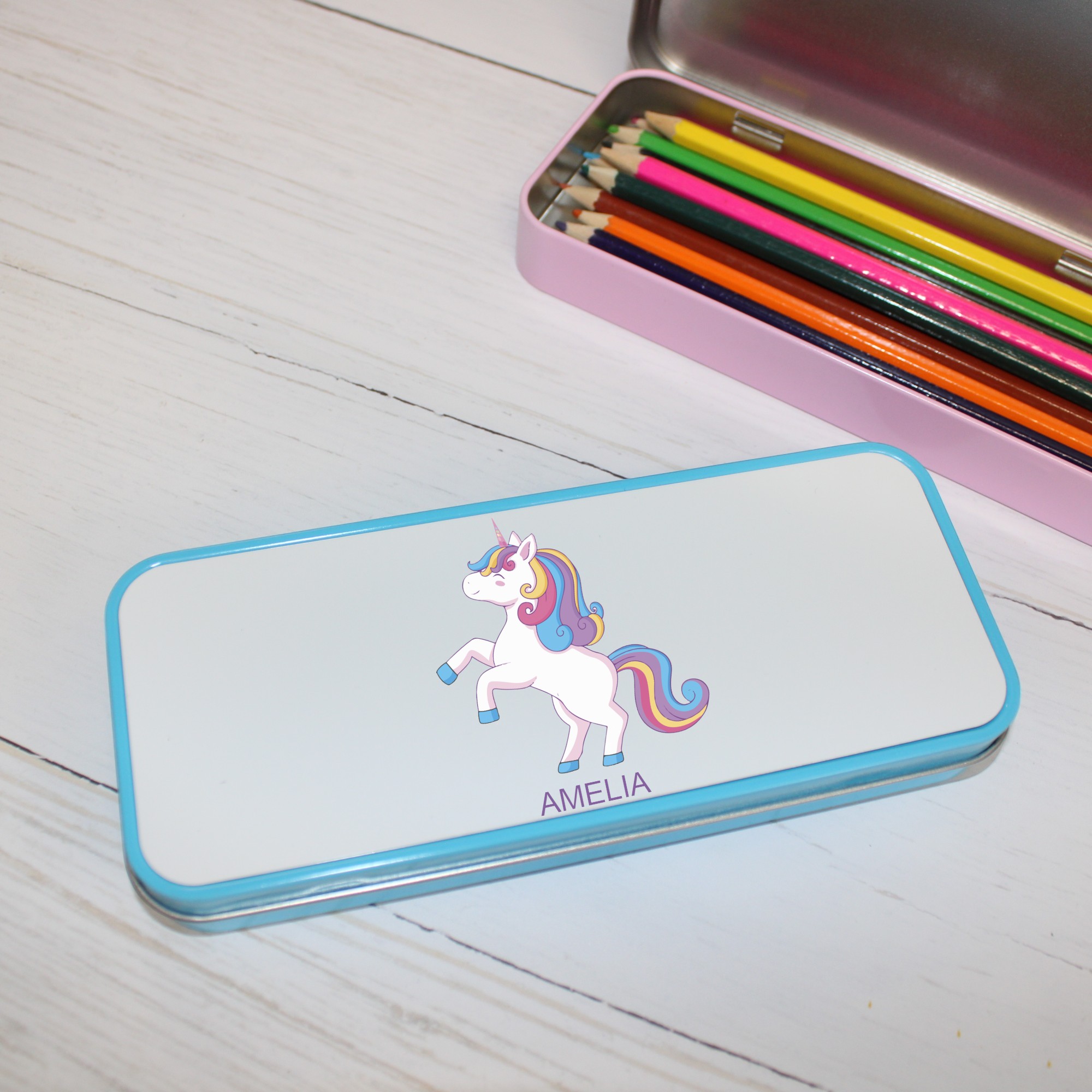 Personalised Metal Pencil Tin – Unicorn | Cute Crayon Pencil Case