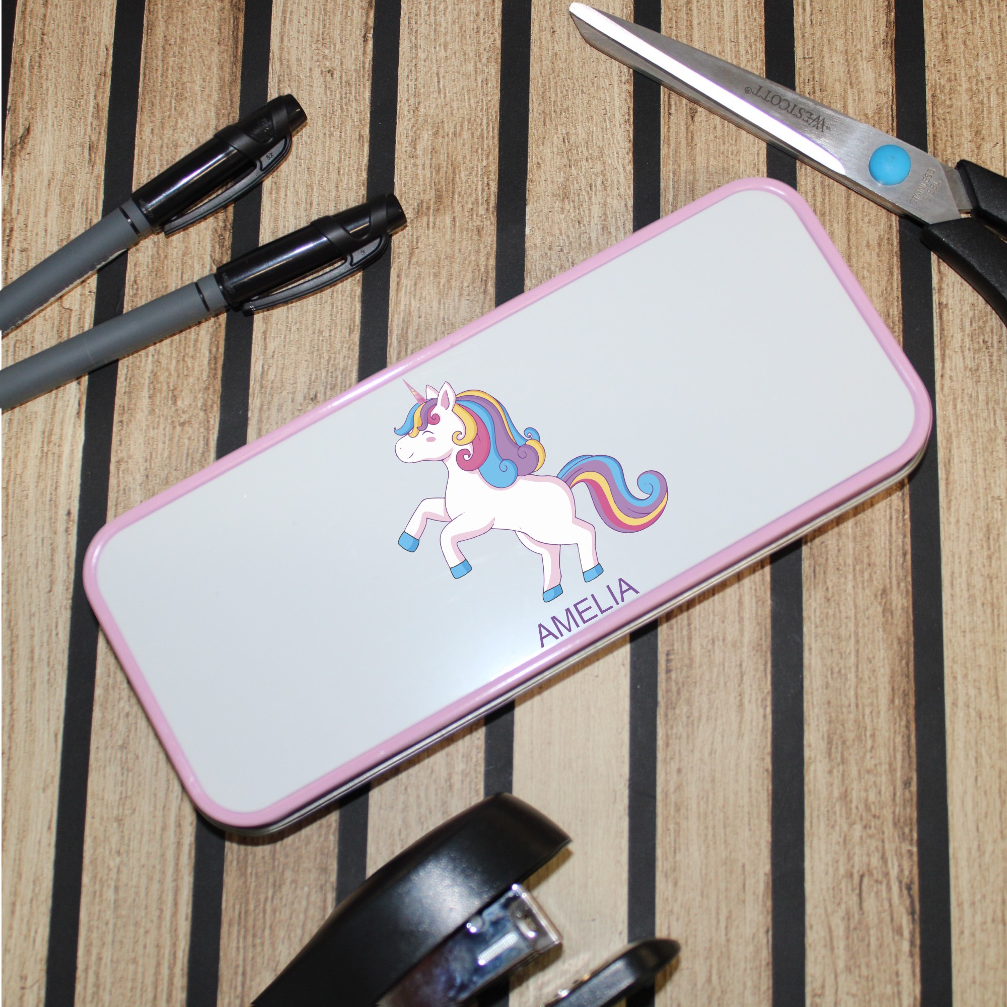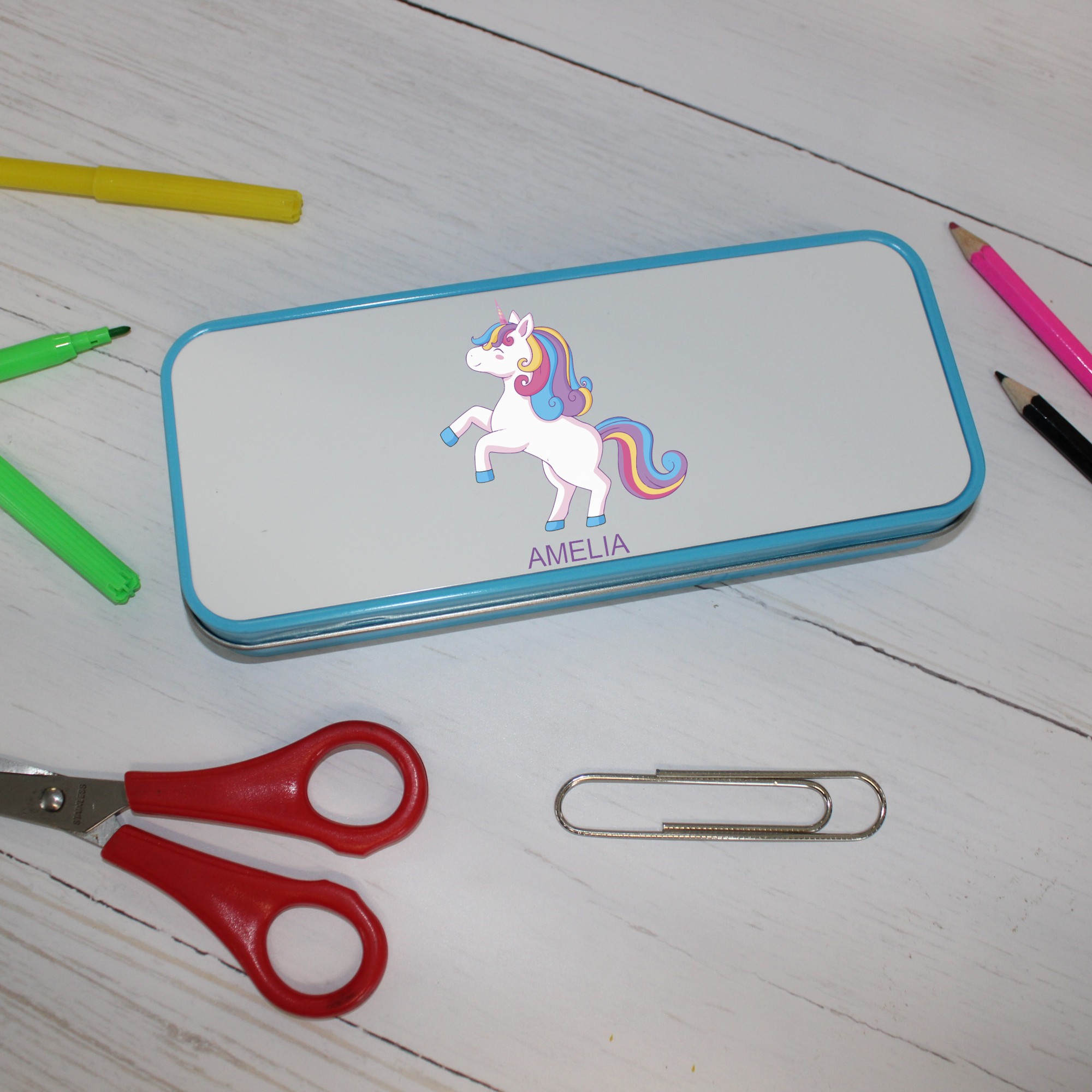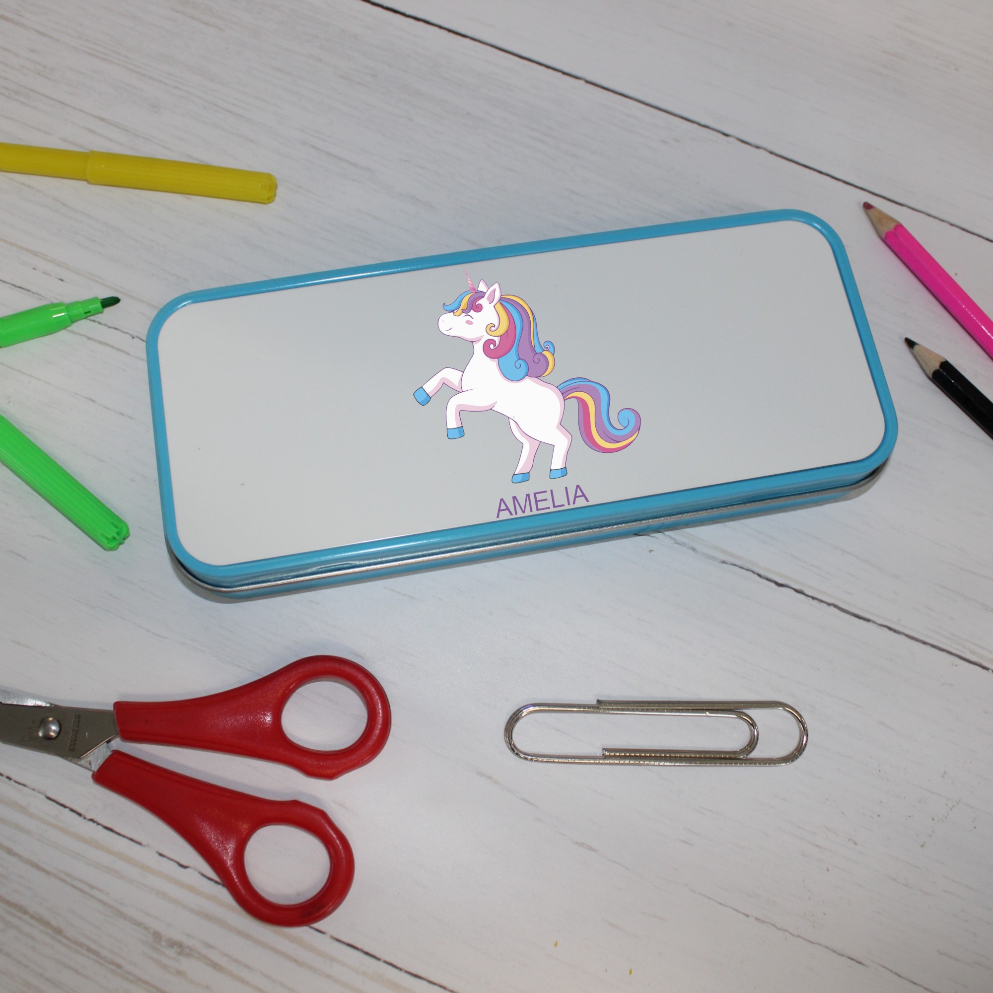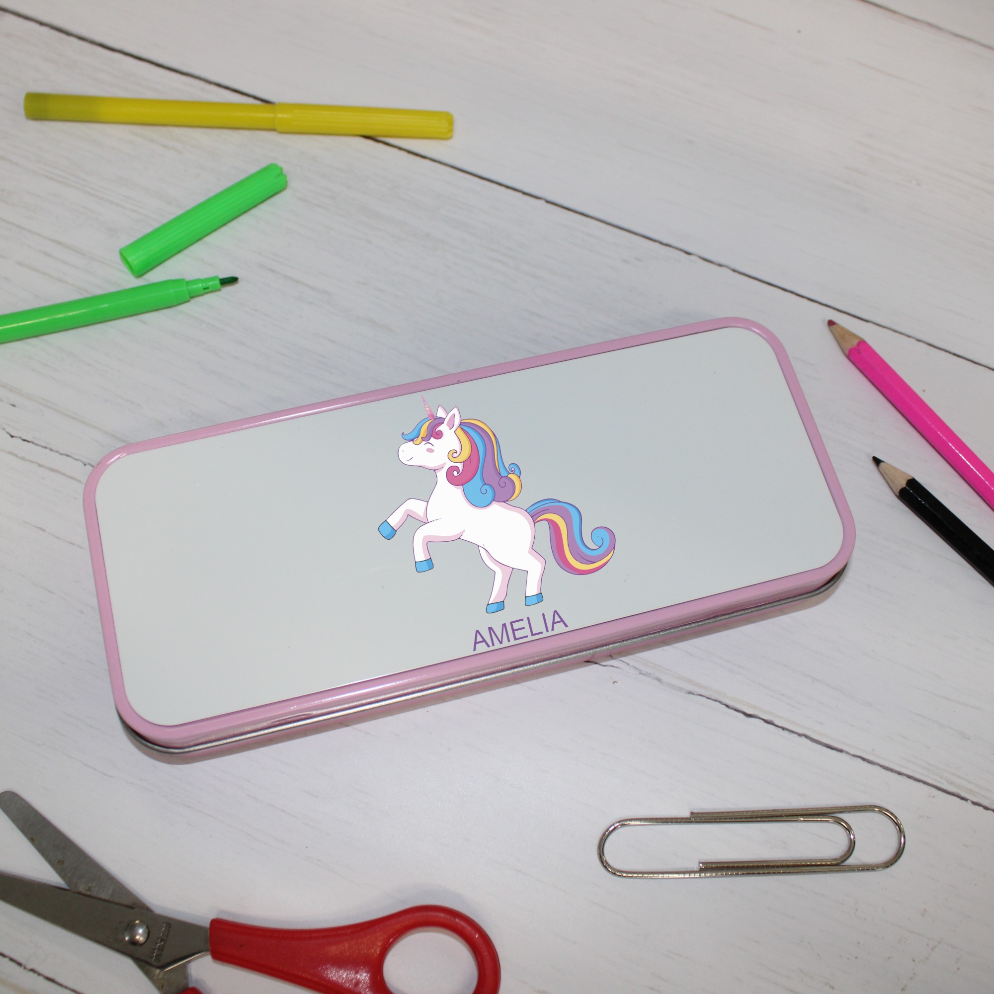 Personalised Metal Pencil Tin – Unicorn | Cute Crayon Pencil Case