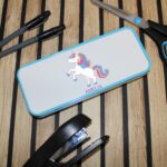 Introducing our Custom Child’s Tin, a personalised metal pencil case that brings a touch of magic to any child’s school supplies. Measuring 18.5 x 7.5 x 2.3 cm, this durable and practical pencil case is perfect for keeping all your child’s writing essentials neatly organised. The exterior features an adorable image of a cartoon cute unicorn, adding a whimsical and enchanting design that kids will love. Personalise it with your choice of name to create a one-of-a-kind gift that’s sure to delight.