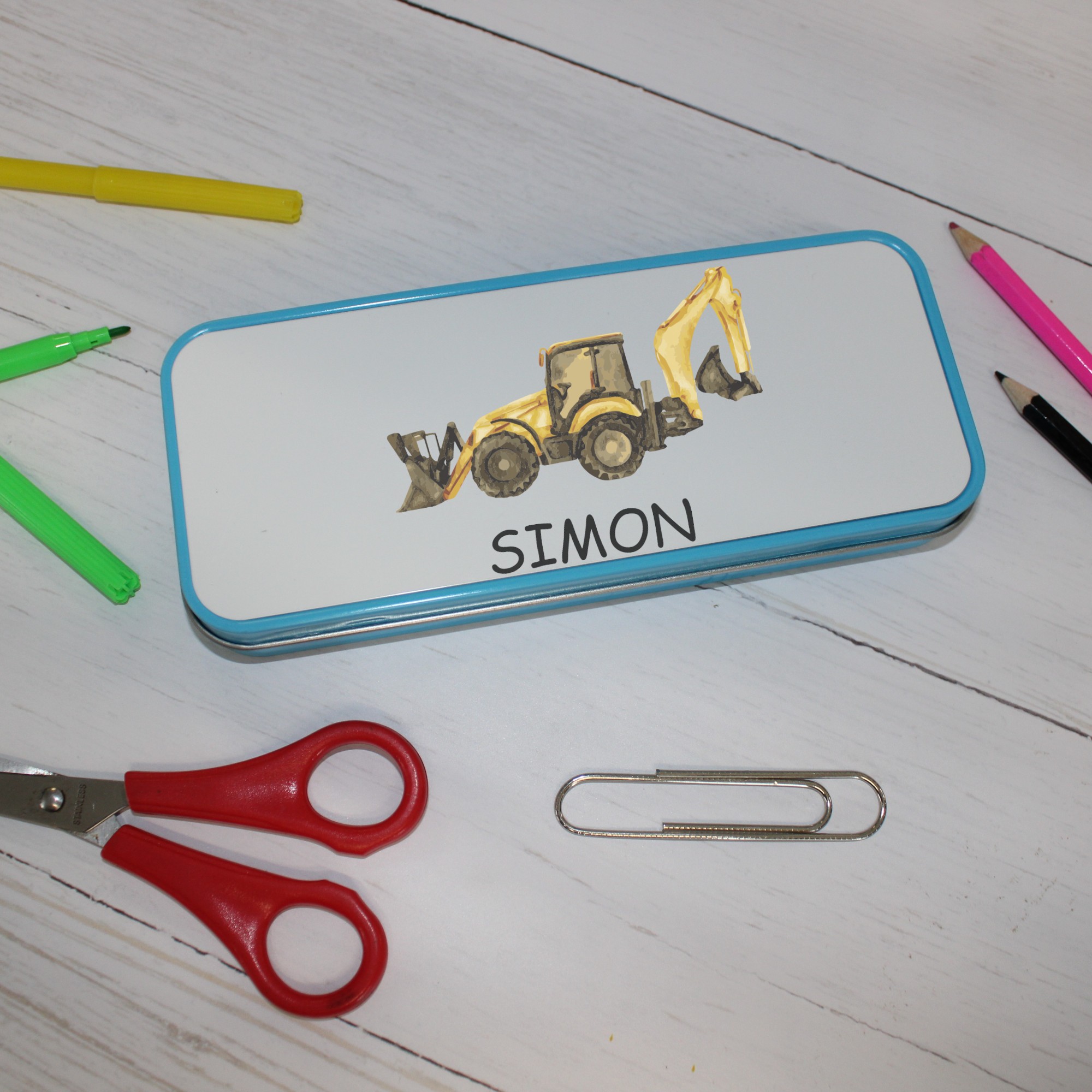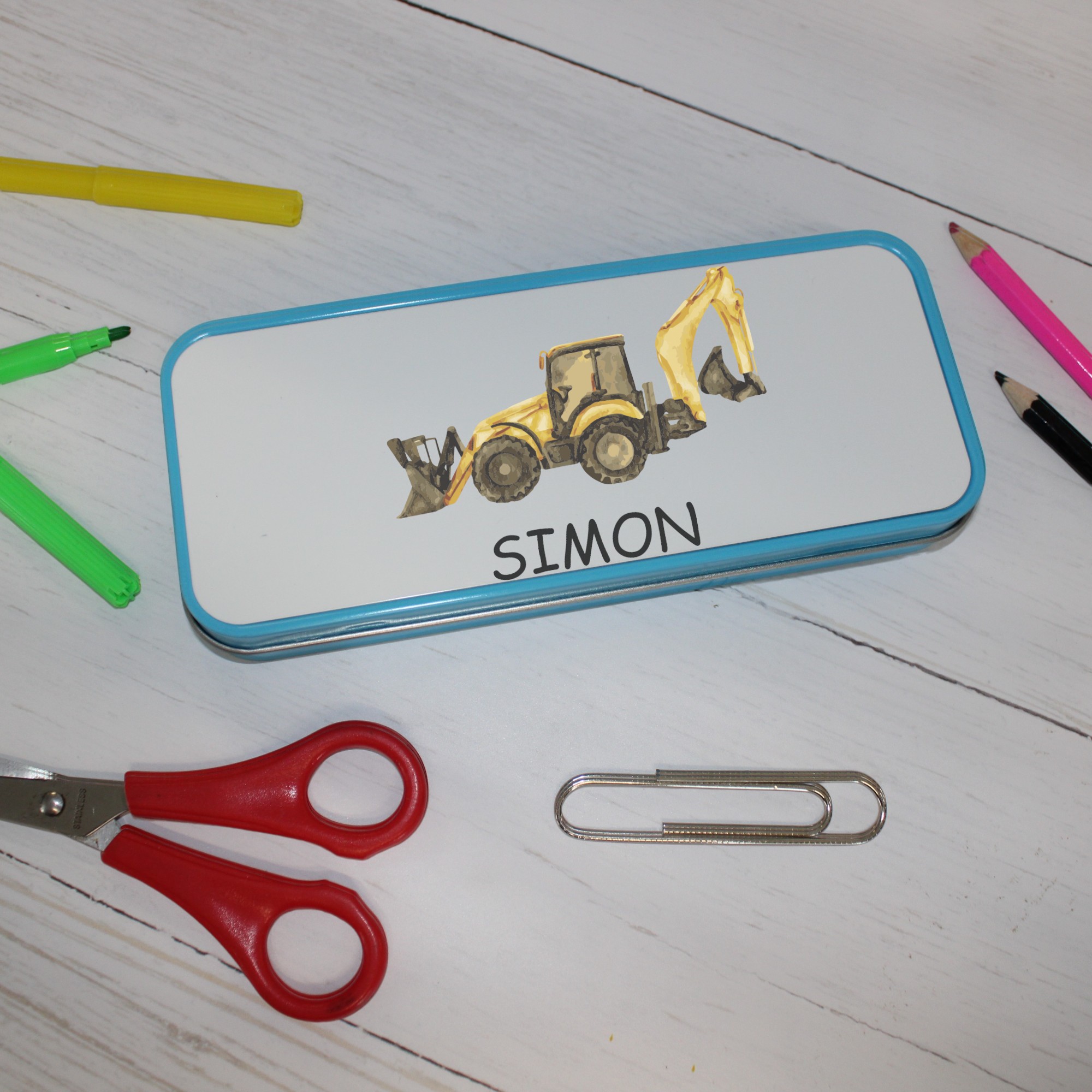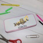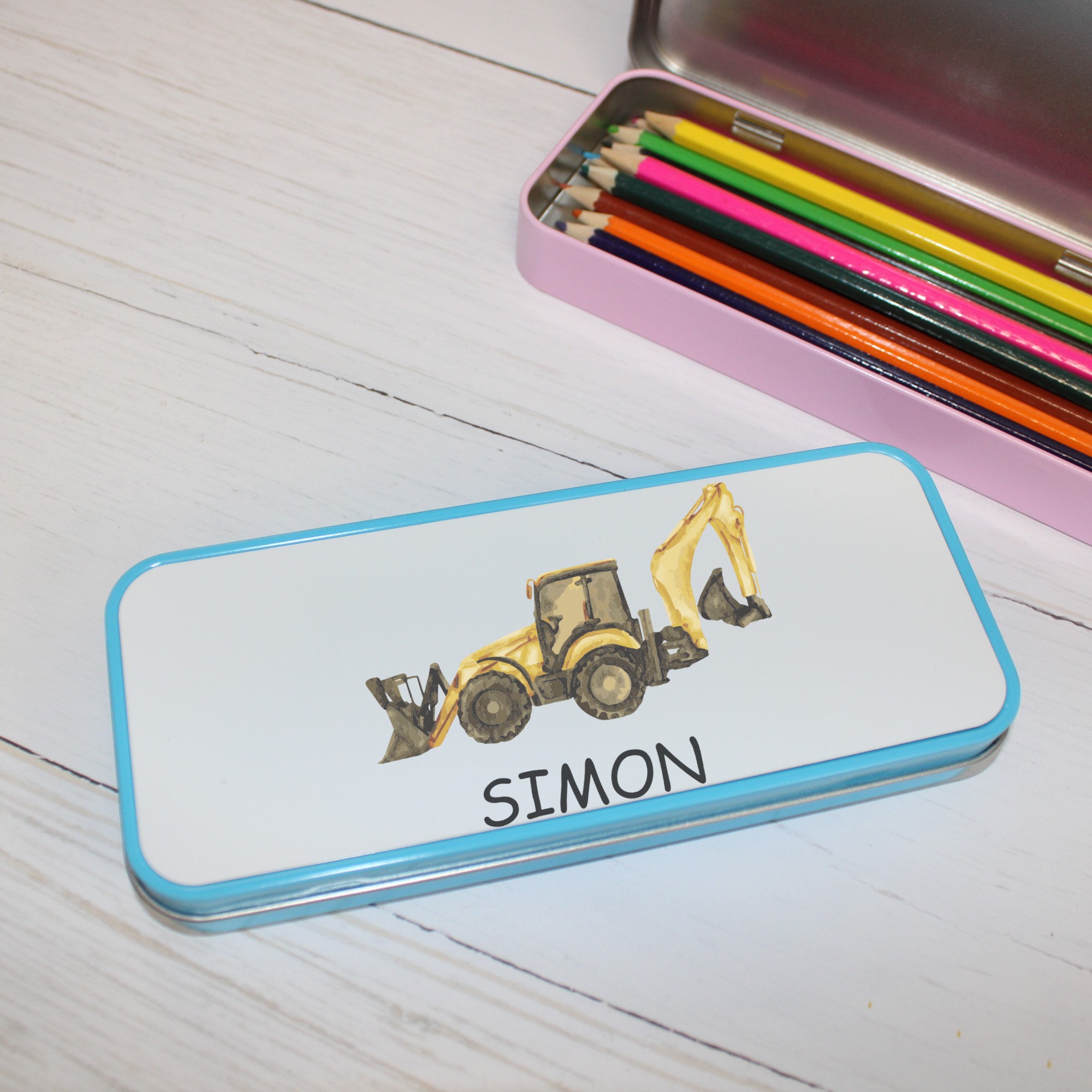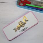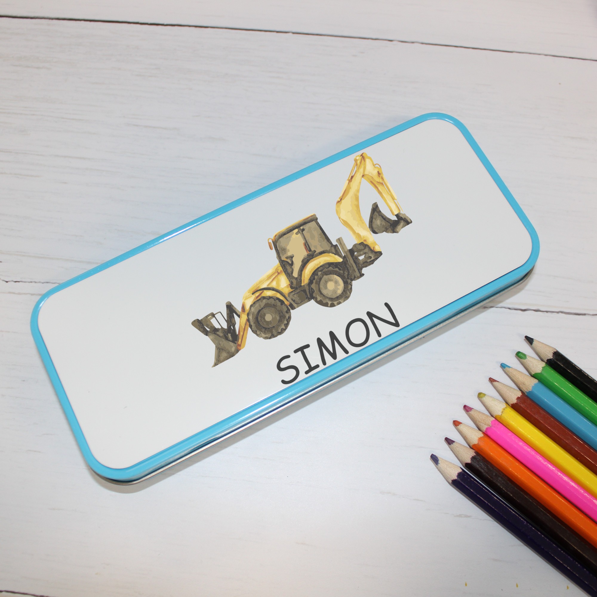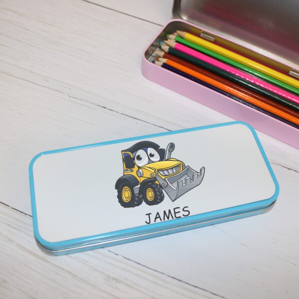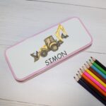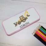 Personalised Metal Pencil Tin – Yellow Digger | Cute Crayon Pencil Case