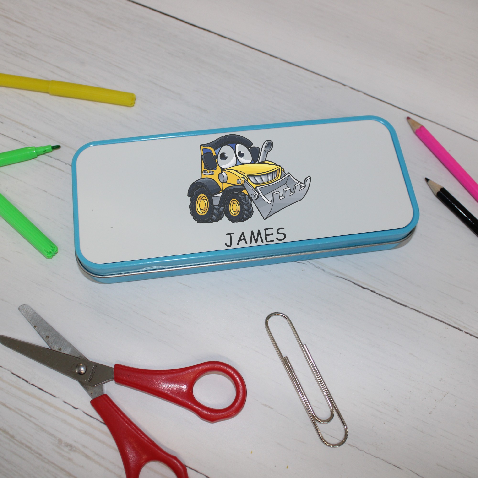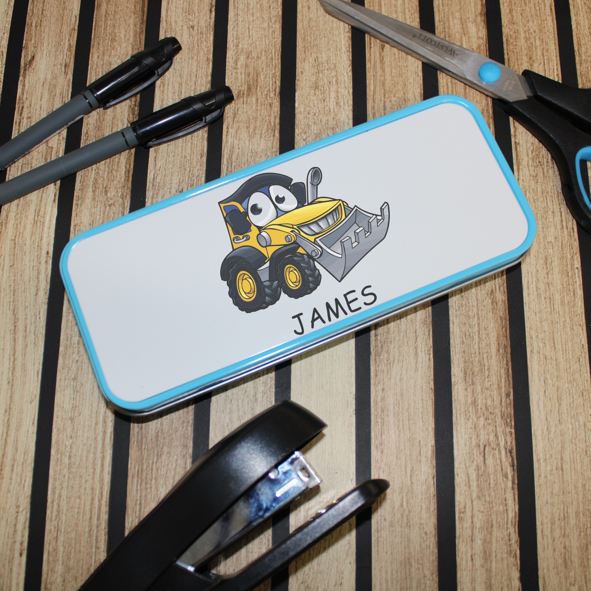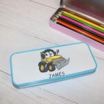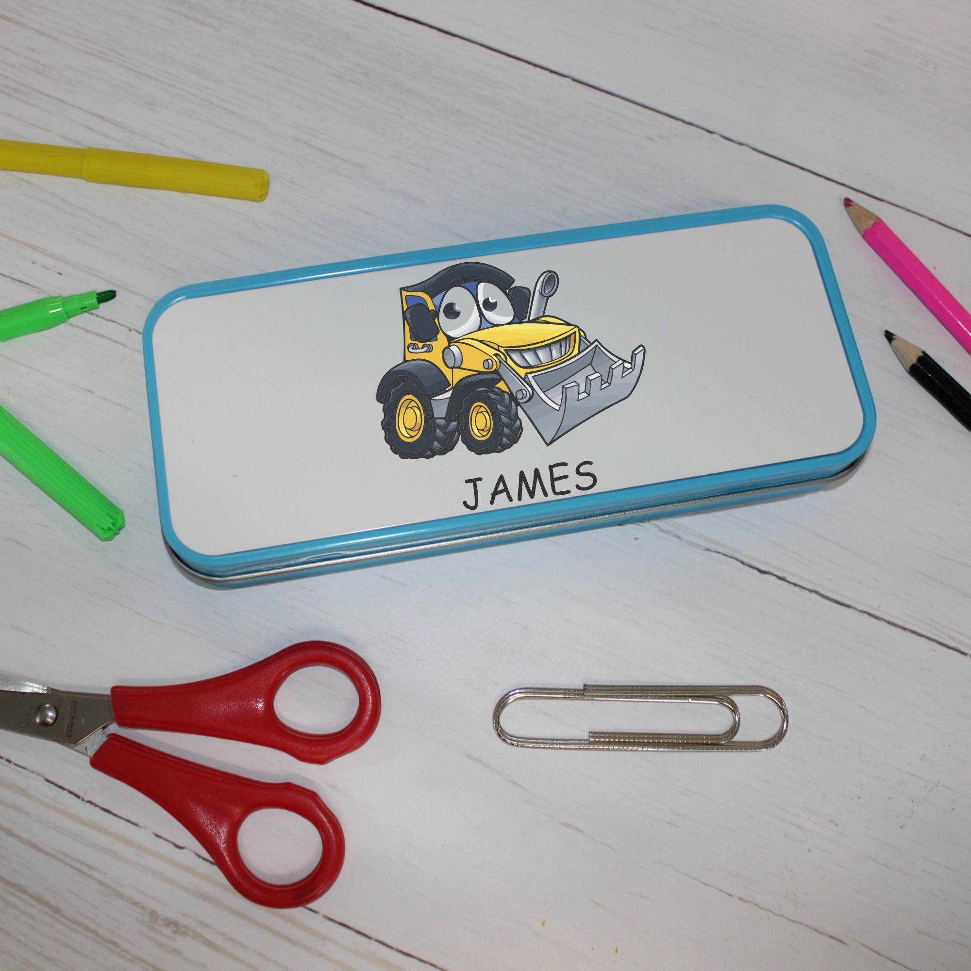 Introducing our Custom Child’s Tin, a personalised metal pencil case designed to delight young students. Measuring 18.5 x 7.5 x 2.3 cm, this sturdy and practical pencil case is perfect for keeping all their writing essentials neatly organised. The exterior features a fun and colorful image of a cartoon yellow scoop, making it an instant favorite among children who love construction vehicles. Customise it with your choice of name to create a truly special and unique gift.