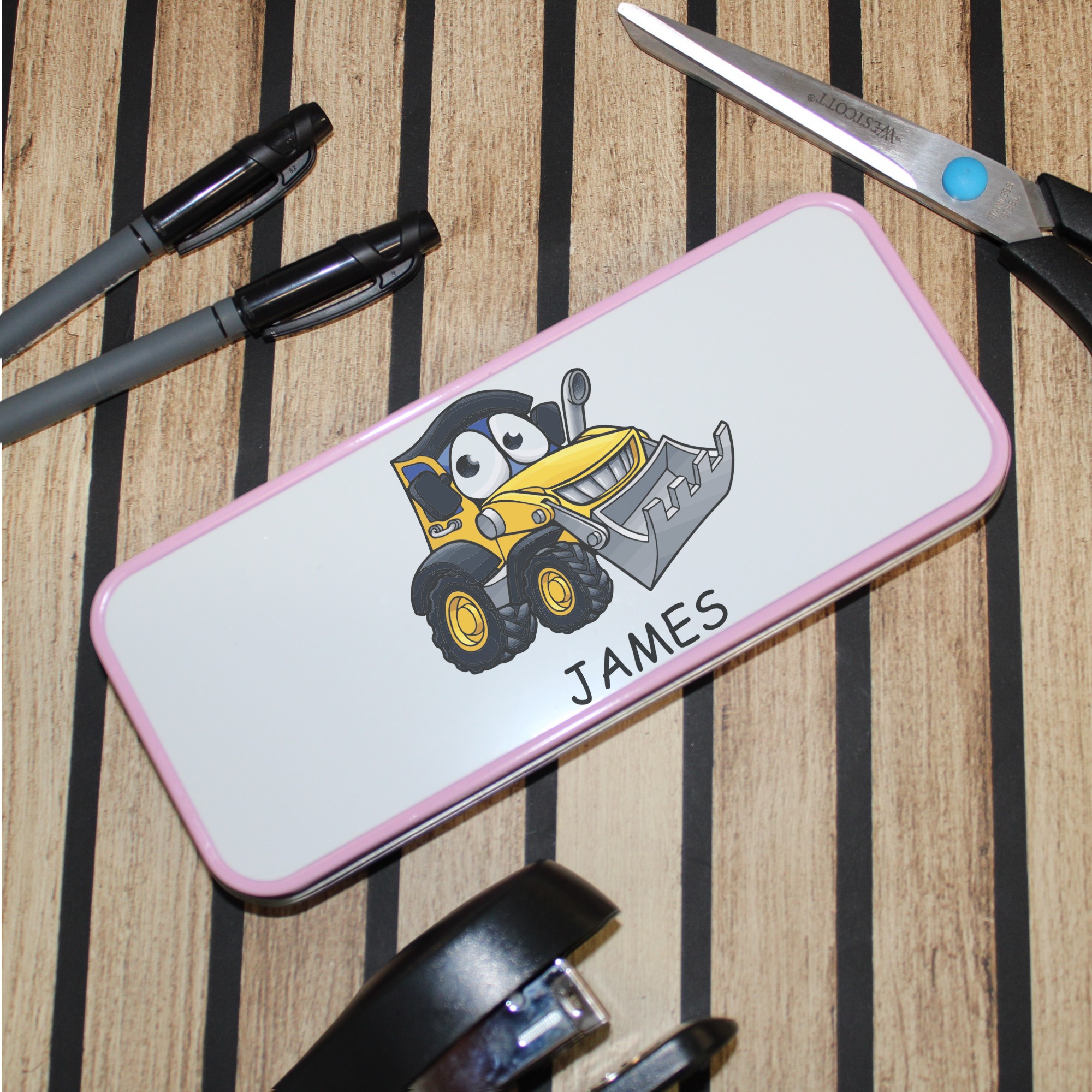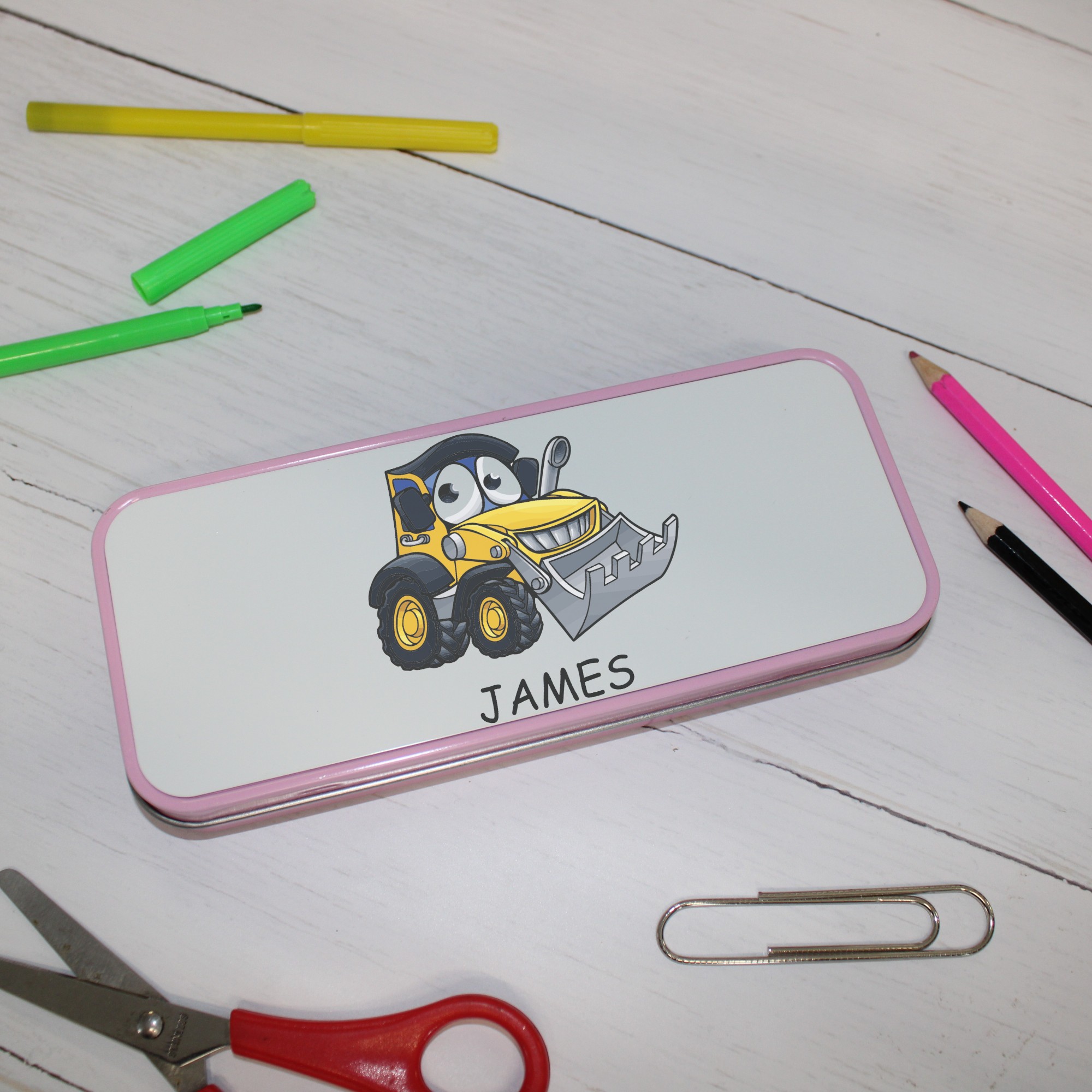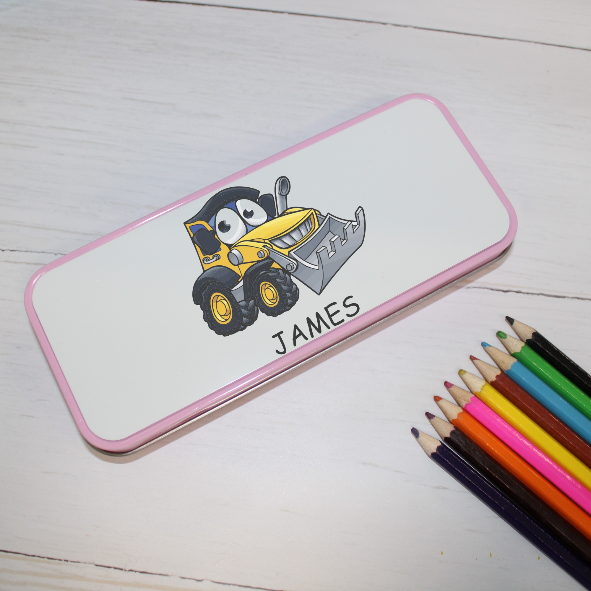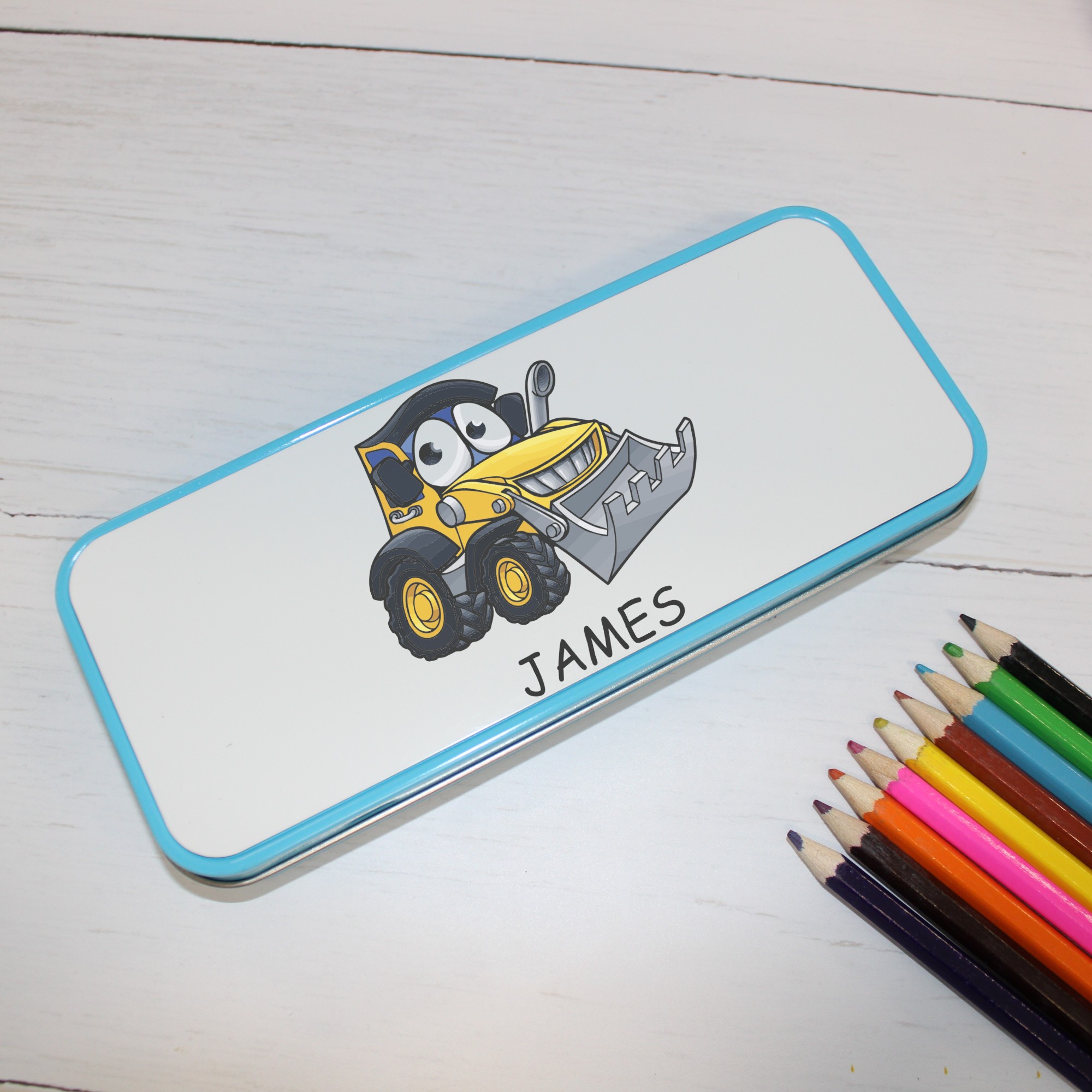 Introducing our Custom Child’s Tin, a personalised metal pencil case designed to delight young students. Measuring 18.5 x 7.5 x 2.3 cm, this sturdy and practical pencil case is perfect for keeping all their writing essentials neatly organised. The exterior features a fun and colorful image of a cartoon yellow scoop, making it an instant favorite among children who love construction vehicles. Customise it with your choice of name to create a truly special and unique gift.