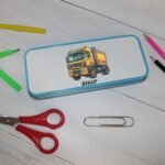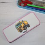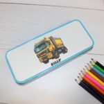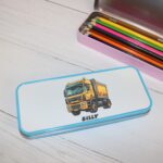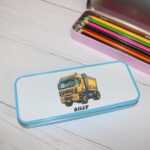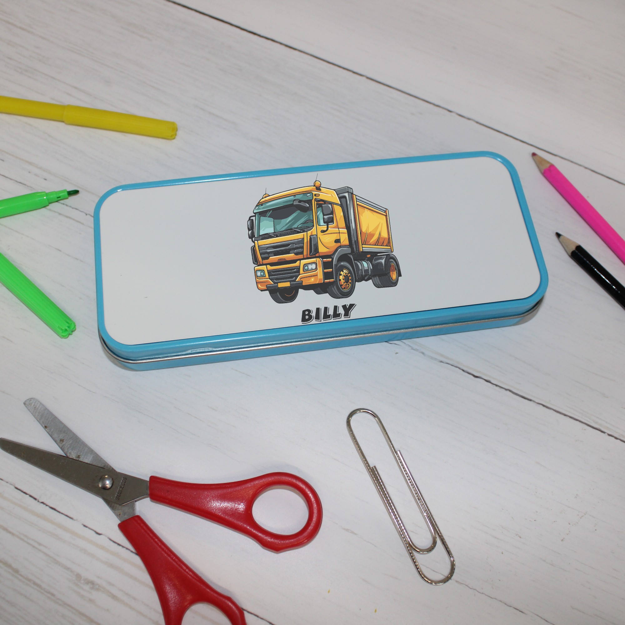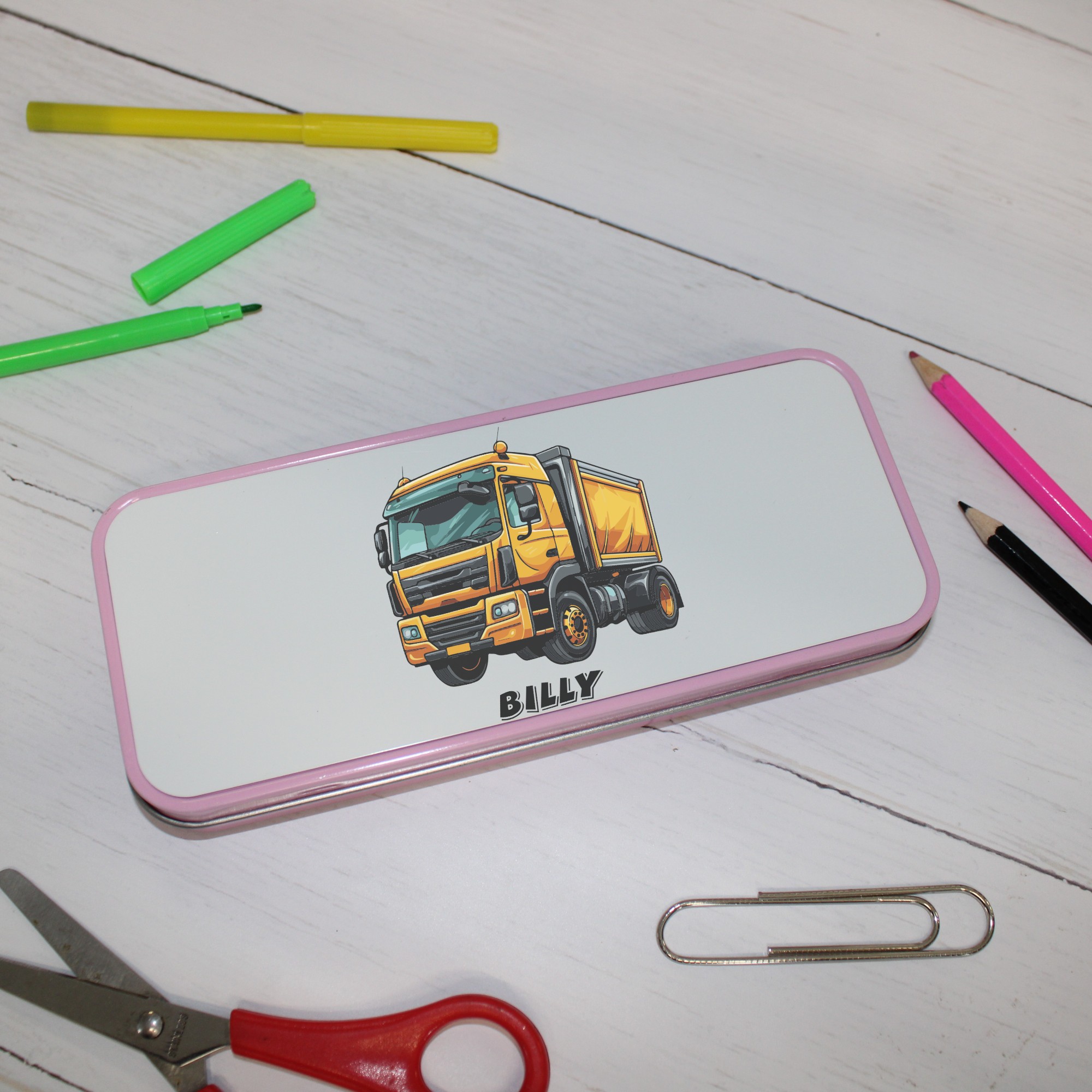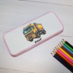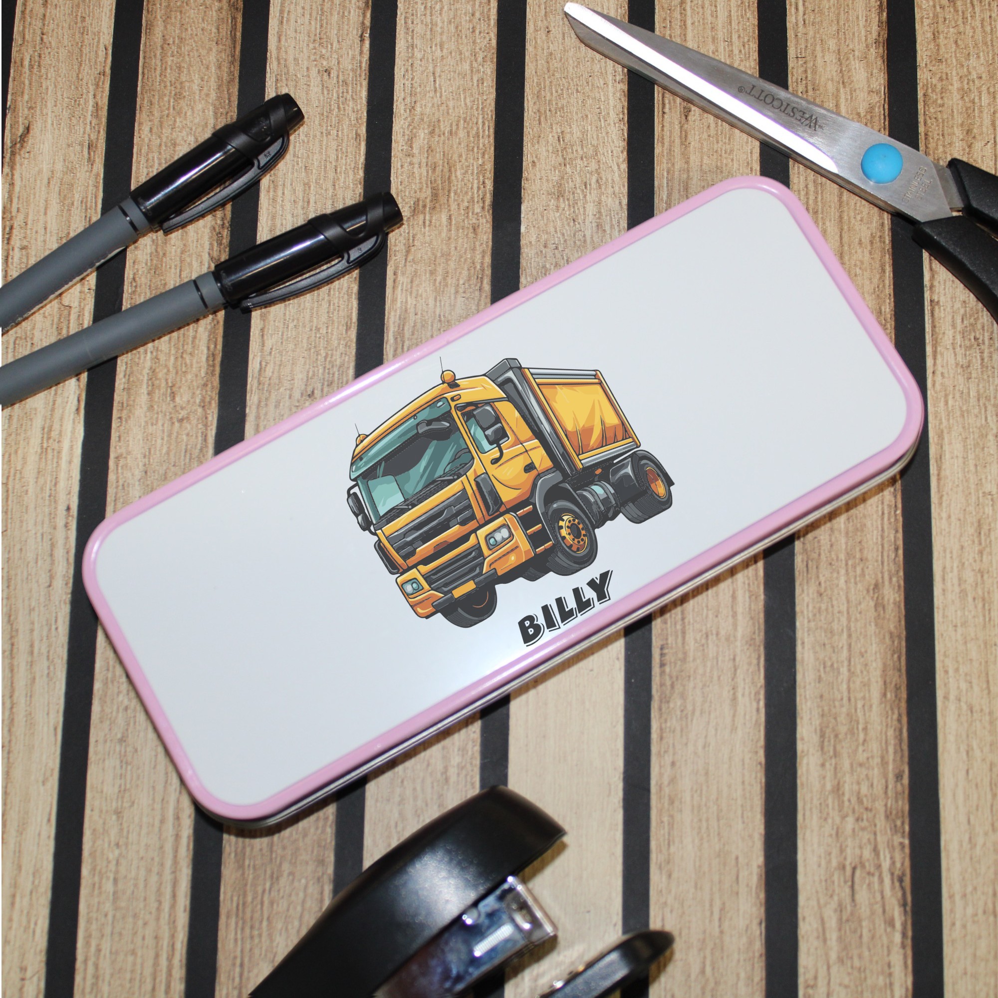Personalised Metal Pencil Tin – Yellow Truck | Cute Crayon Pencil Case