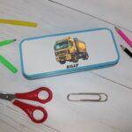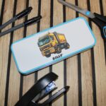 Introducing our Custom Child’s Tin, a personalised metal pencil case that’s perfect for young truck enthusiasts. Measuring 18.5 x 7.5 x 2.3 cm, this durable and spacious pencil case is ideal for keeping all your child’s writing essentials organised. The exterior features a bright and cheerful image of a cartoon yellow truck, adding a fun and playful touch to their school supplies. Personalise it with your choice of name to create a unique and thoughtful gift that’s sure to be cherished.