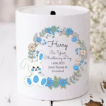 Personalised Money Box – Bunny Boys Christening Gift – Baby Baptism Gift