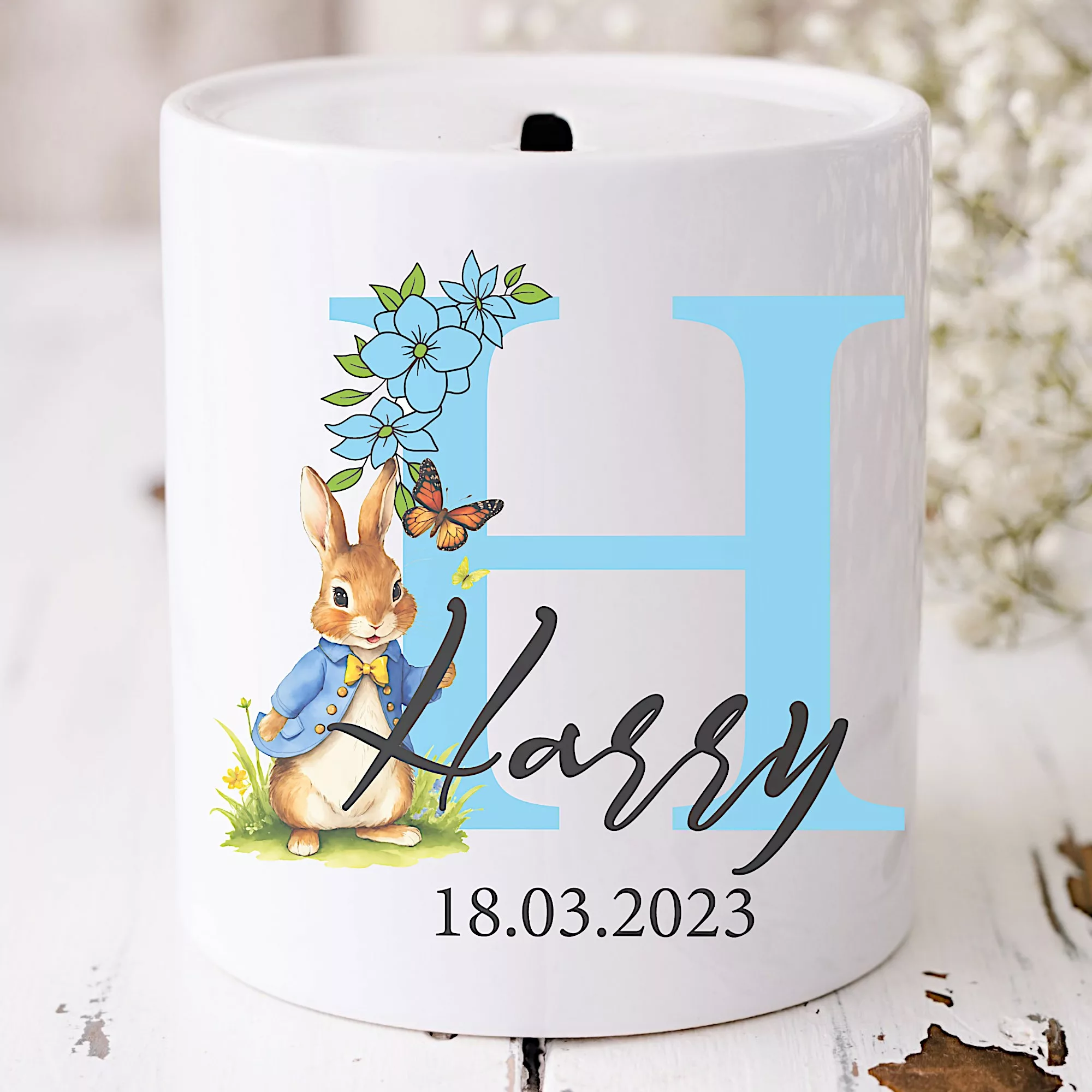Personalised Money Box – Peter Rabbit Baby Boy – Newborn Gift – Baby Gift Idea